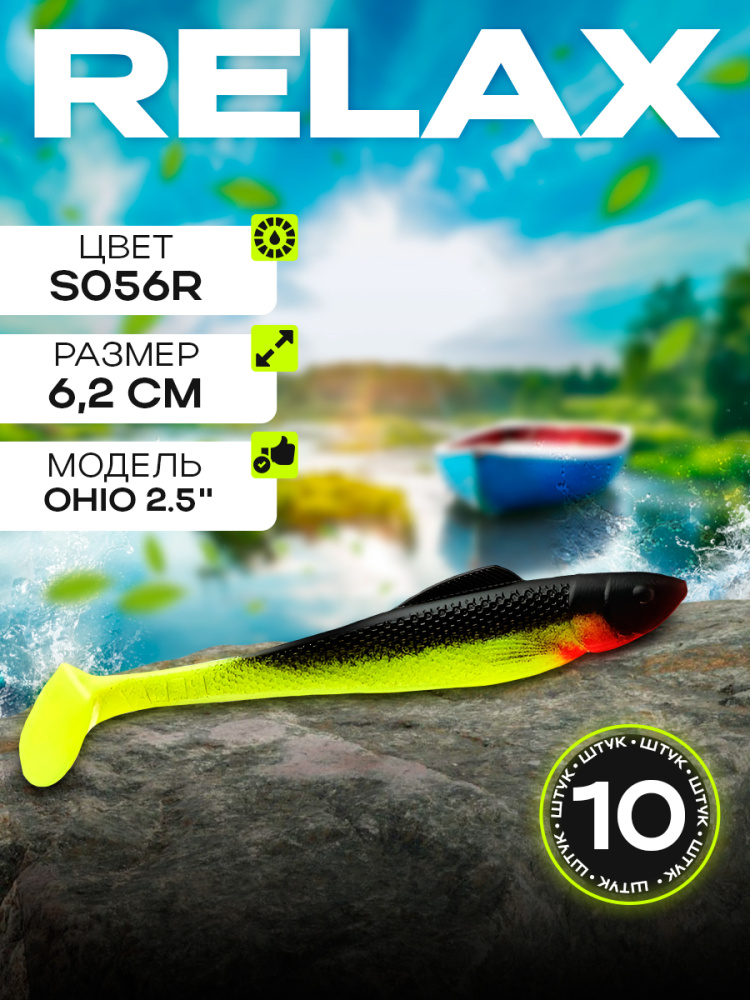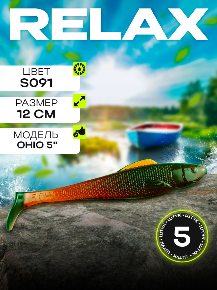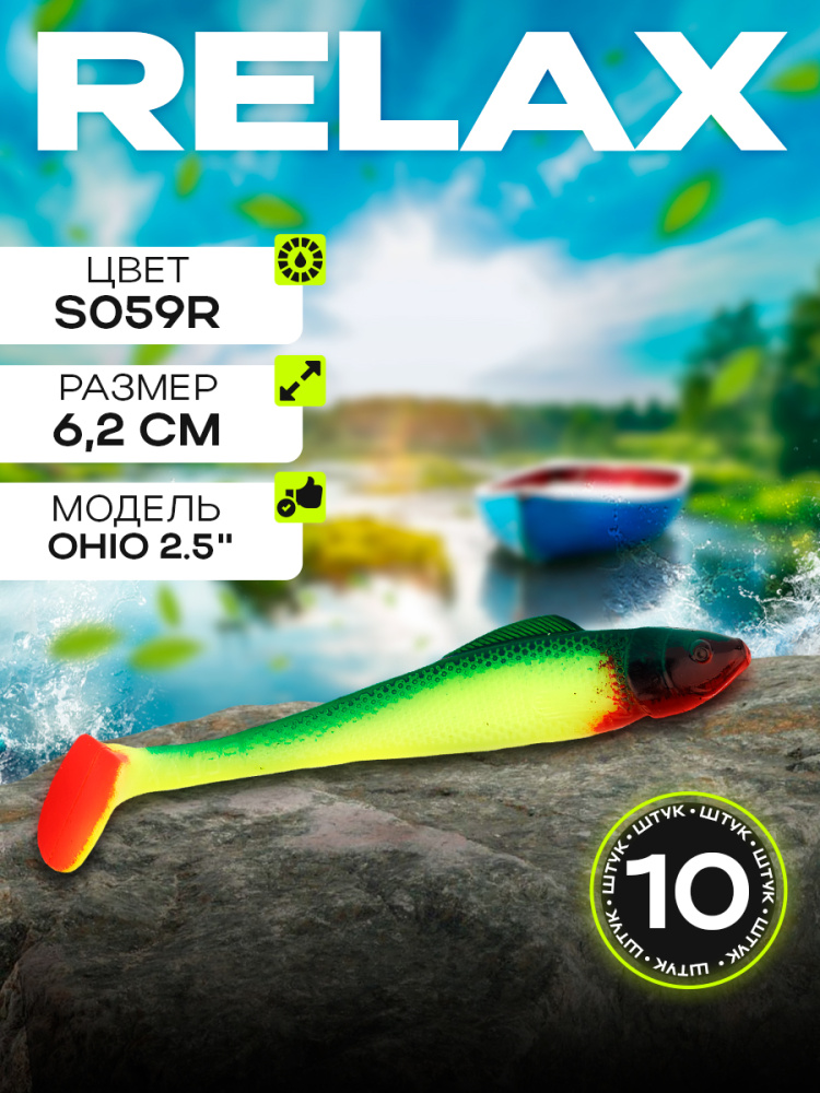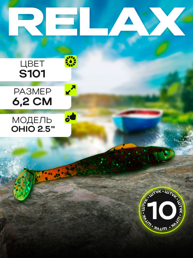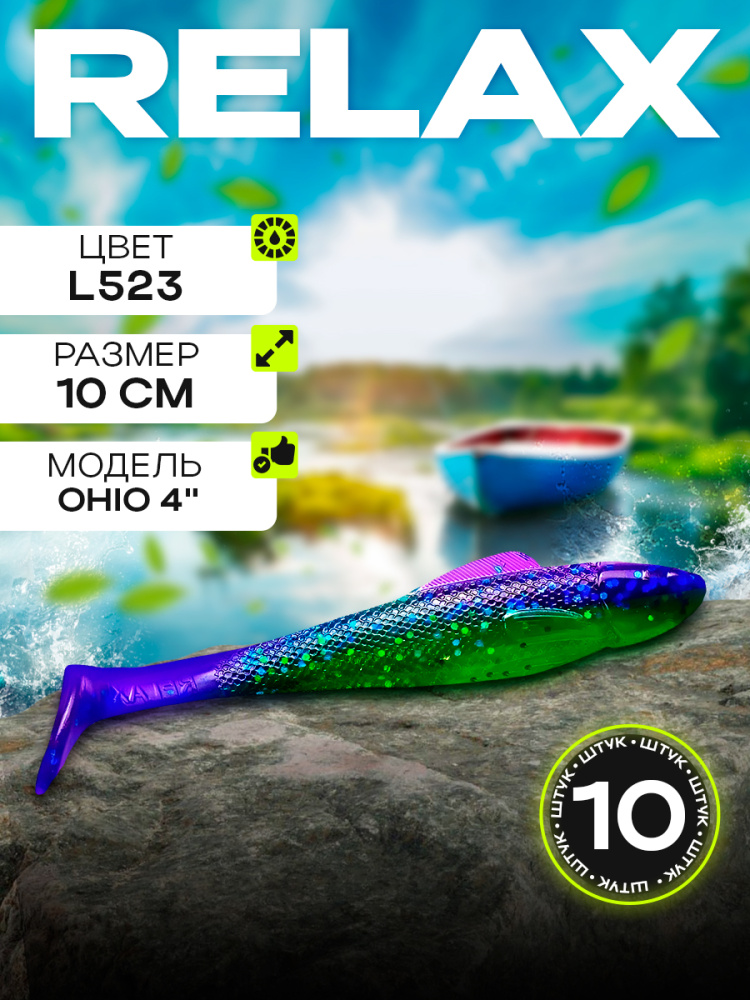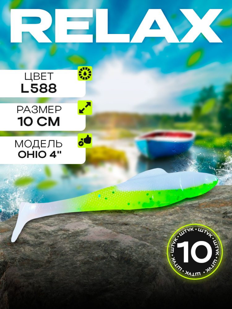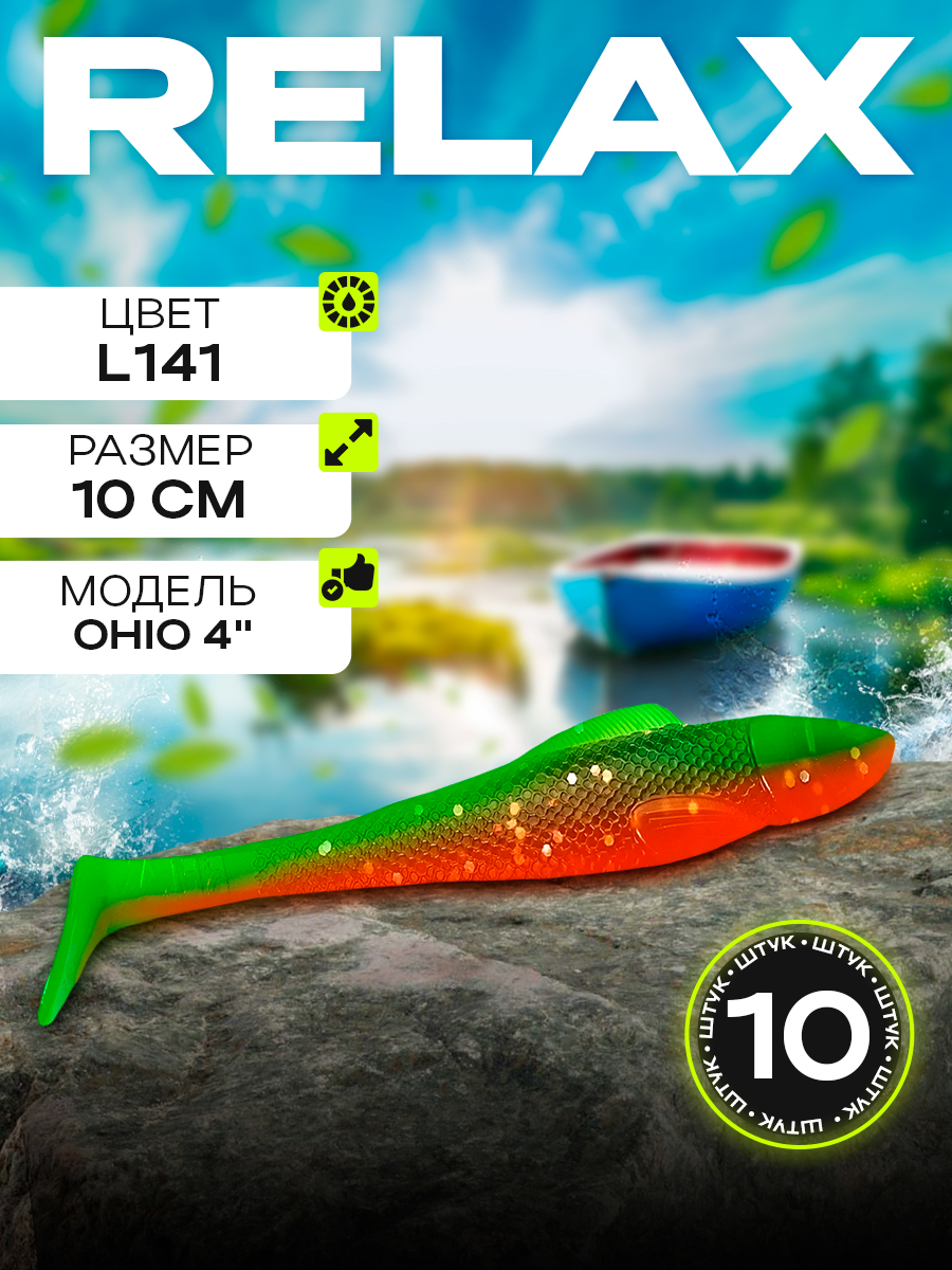 Виброхвосты Relax Ohio 4" 10см цвет L141 (оранжевый, зеленый, с блестками) (10шт) (OH4)