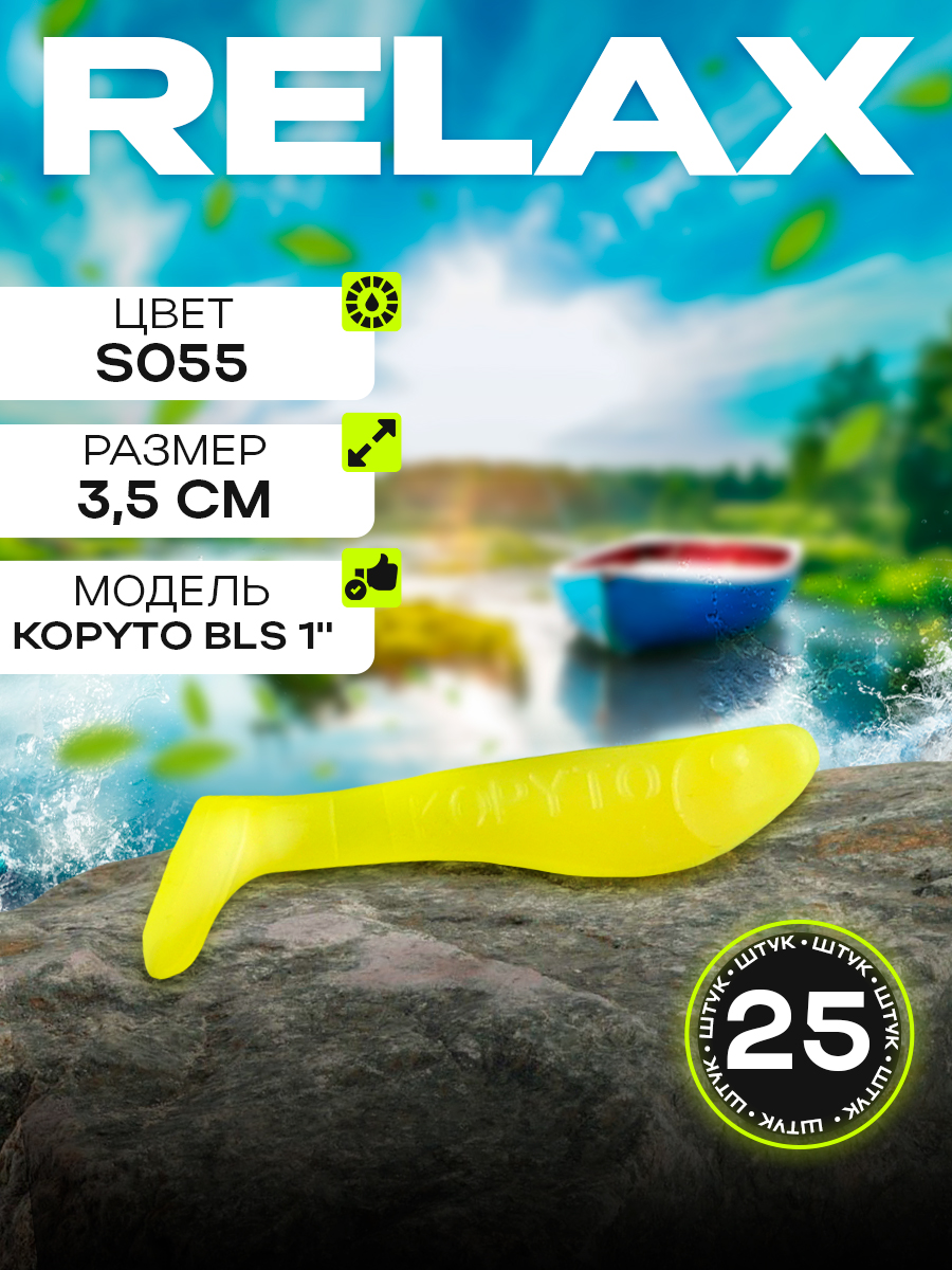 Виброхвосты Relax Kopyto BLS 1" 3,5см цвет S055 (желтый) (25шт) (BLS1)