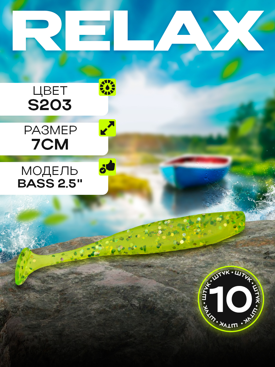 Виброхвосты Relax Bass 2.5" 7см цвет S203 (желтый, прозрачный, с блестками) (10шт) (BAS25)