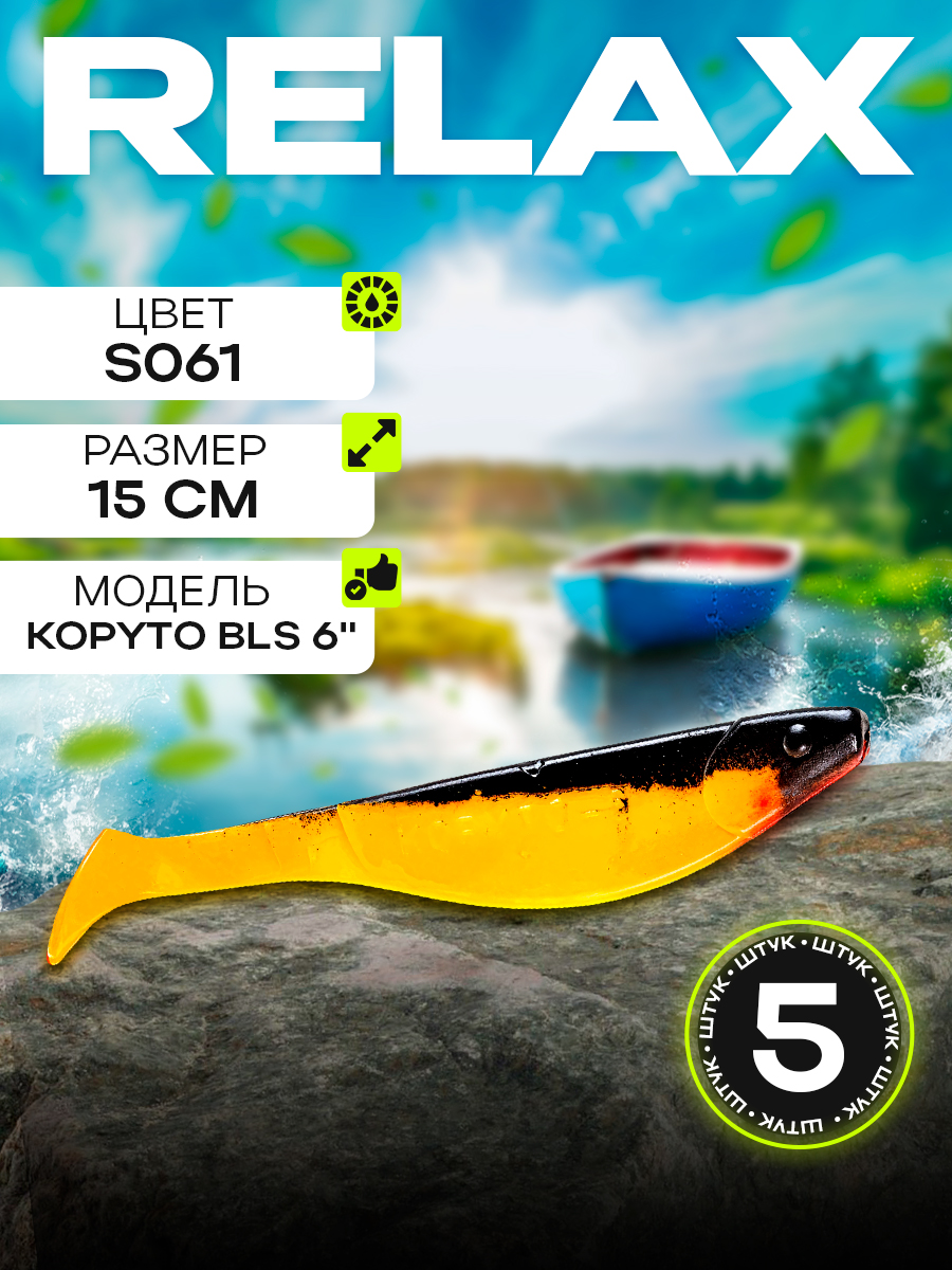 Виброхвосты Relax Kopyto BLS 6" 15см цвет S061 (желтый, черная спинка) (5шт) (BLS6)