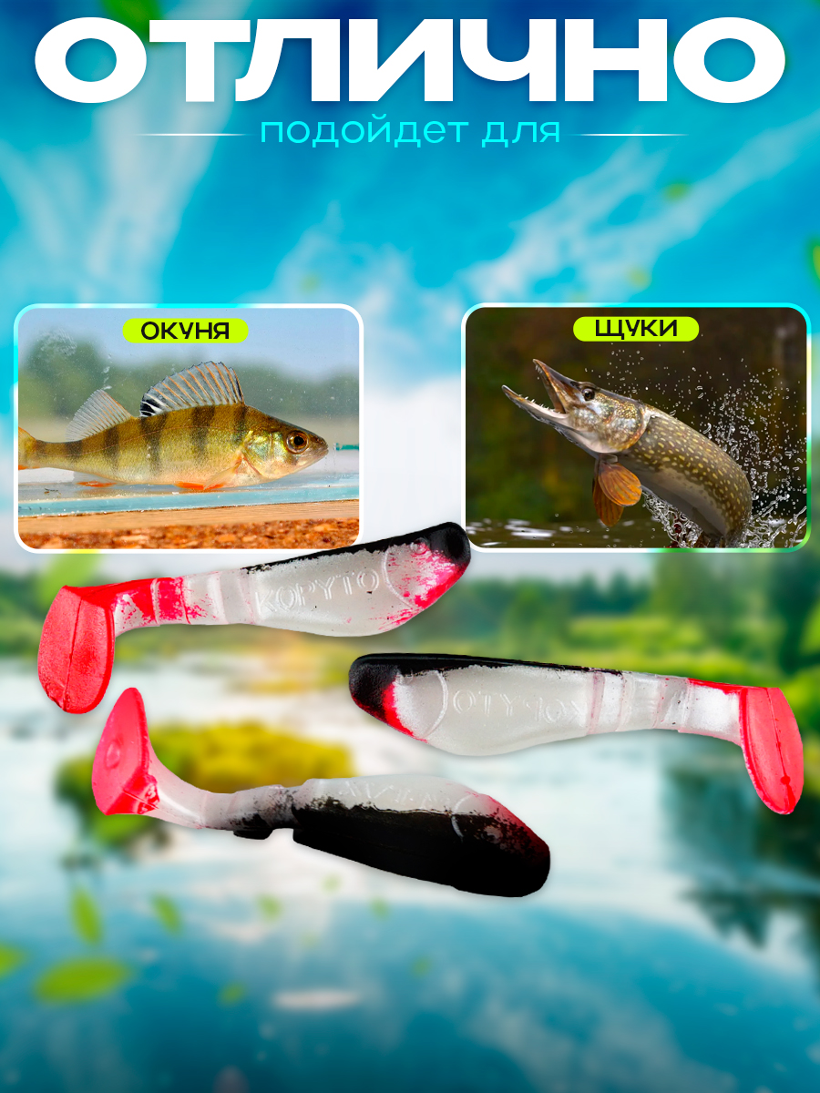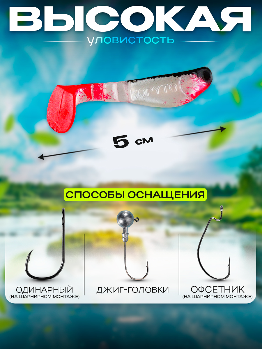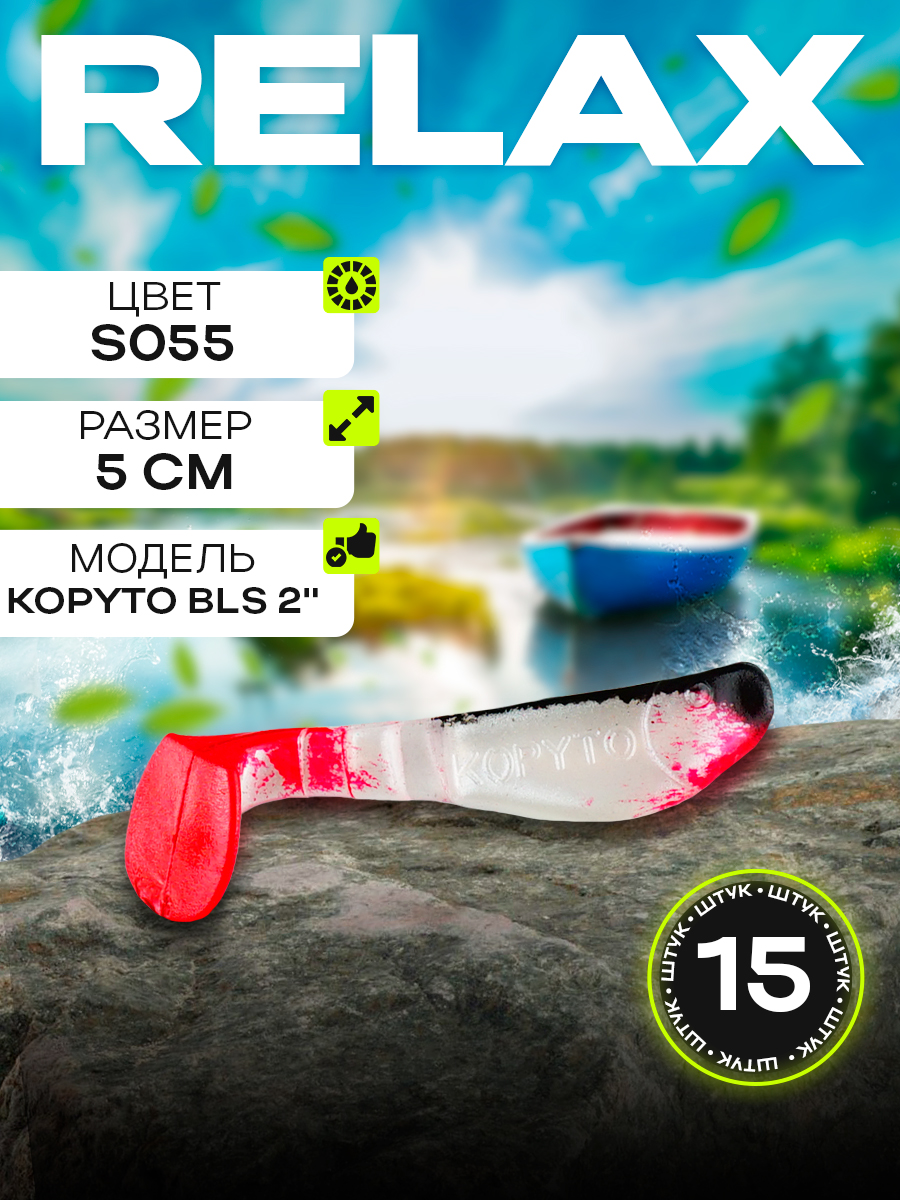 Виброхвосты Relax Kopyto BLS 2" 5см цвет S008R (перламутровый, черный, красный) (15шт) (BLS2)