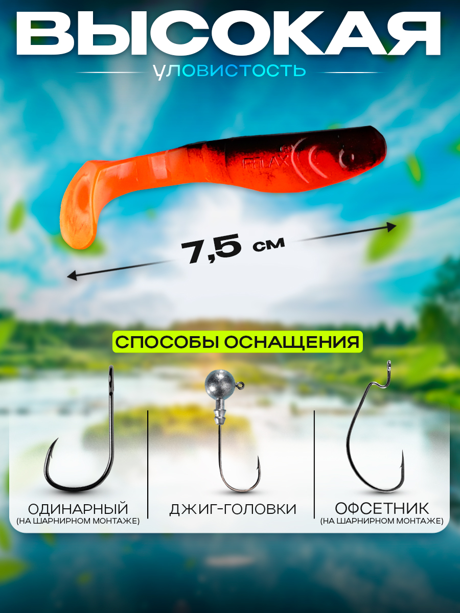 Виброхвосты Relax Kopyto BLS 3" 7,5см цвет S072 (красный, черный) (10шт) (BLS3)