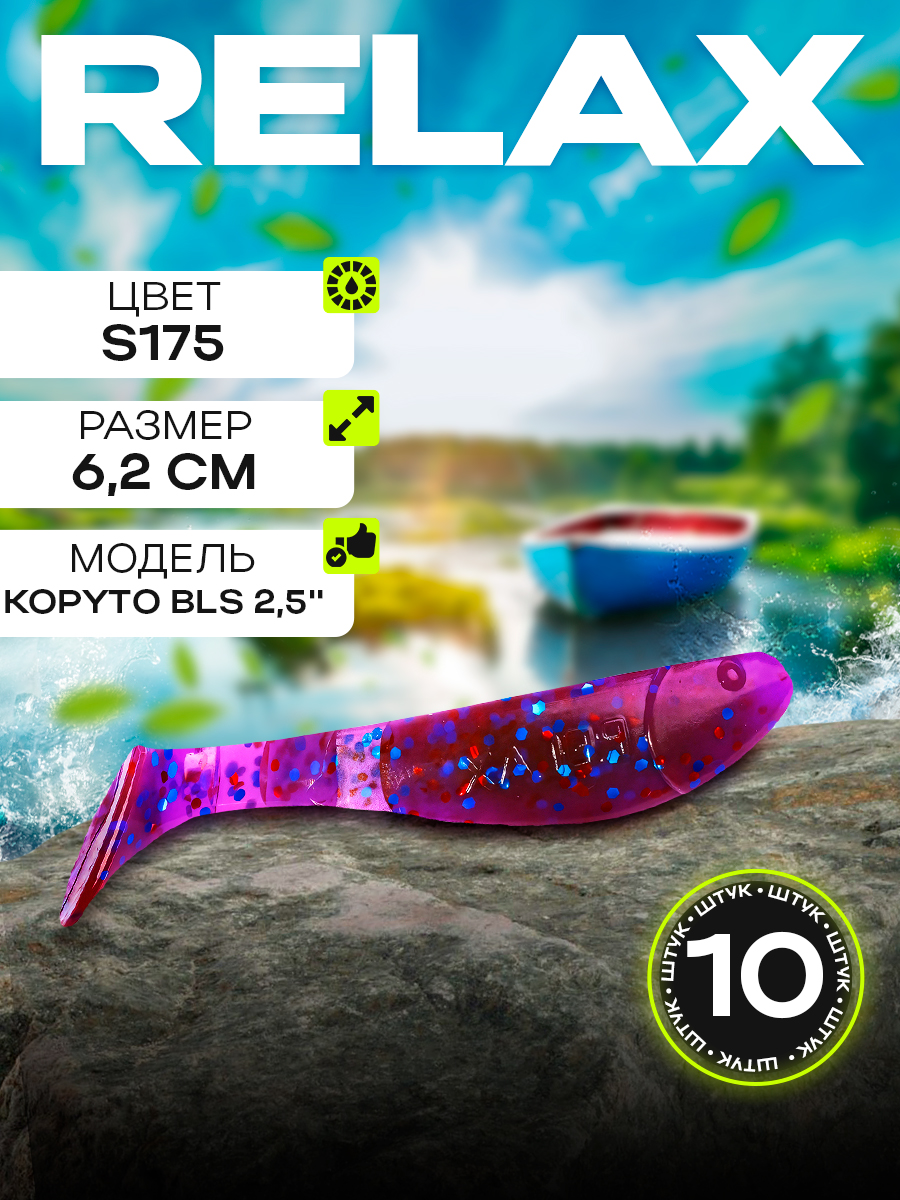 Виброхвосты Relax Kopyto BLS 2.5" 6,2см цвет S175 (лиловый, синие блестки) (10шт) (BLS25)