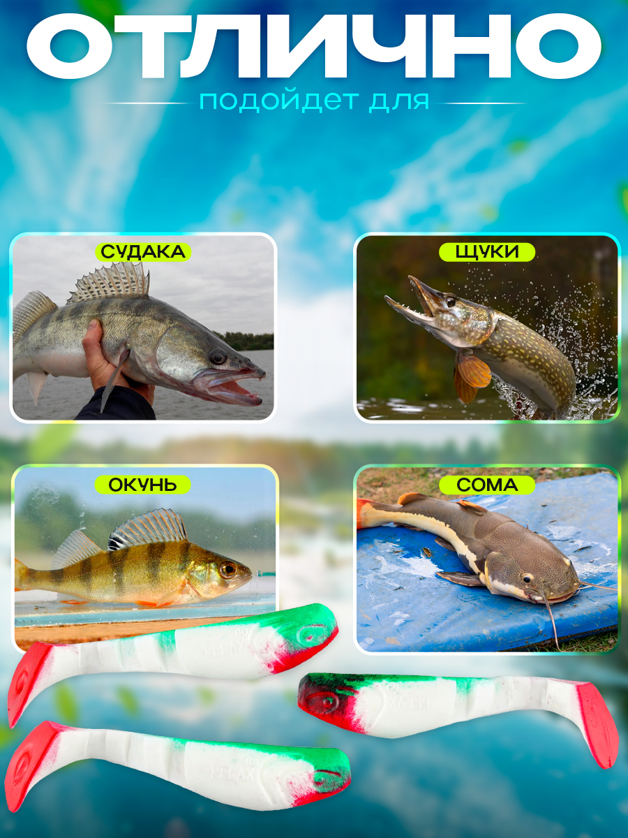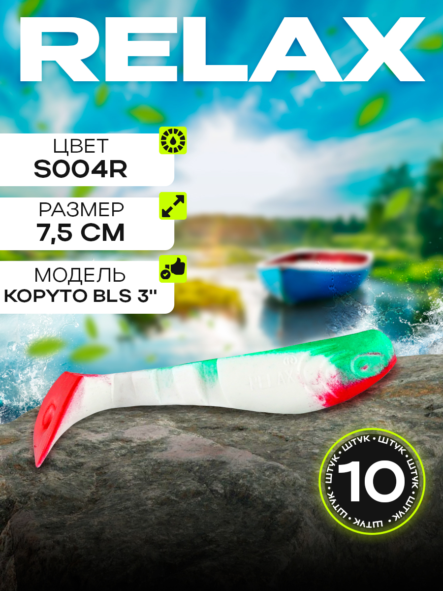 Виброхвосты Relax Kopyto BLS 3" 7,5см цвет S004R (белый, зеленый, красный) (10шт) (BLS3)