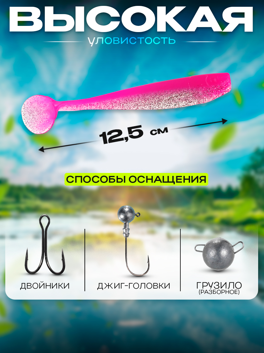 Виброхвосты Relax Kingshad 5" 12,5см цвет L477 (прозрачный, розовый, с блестками) (5шт) (KS5)