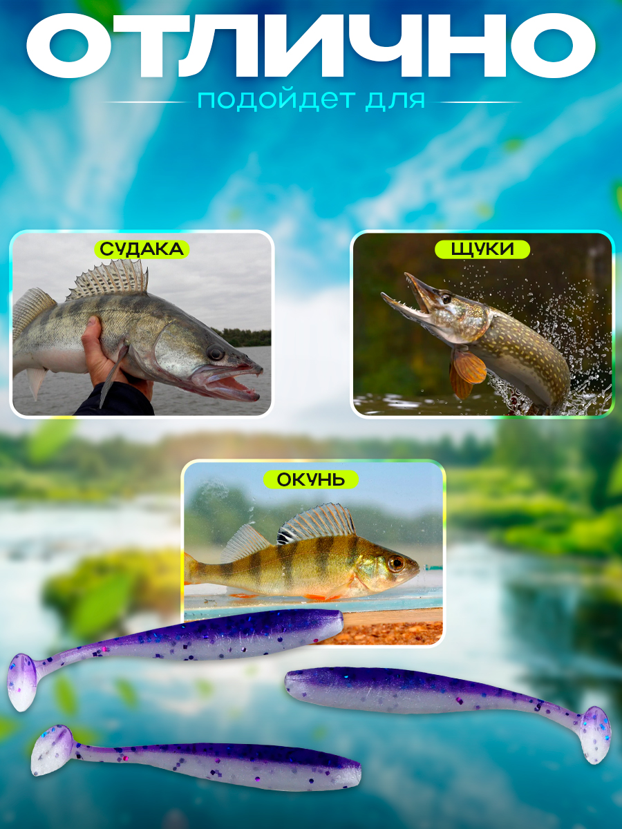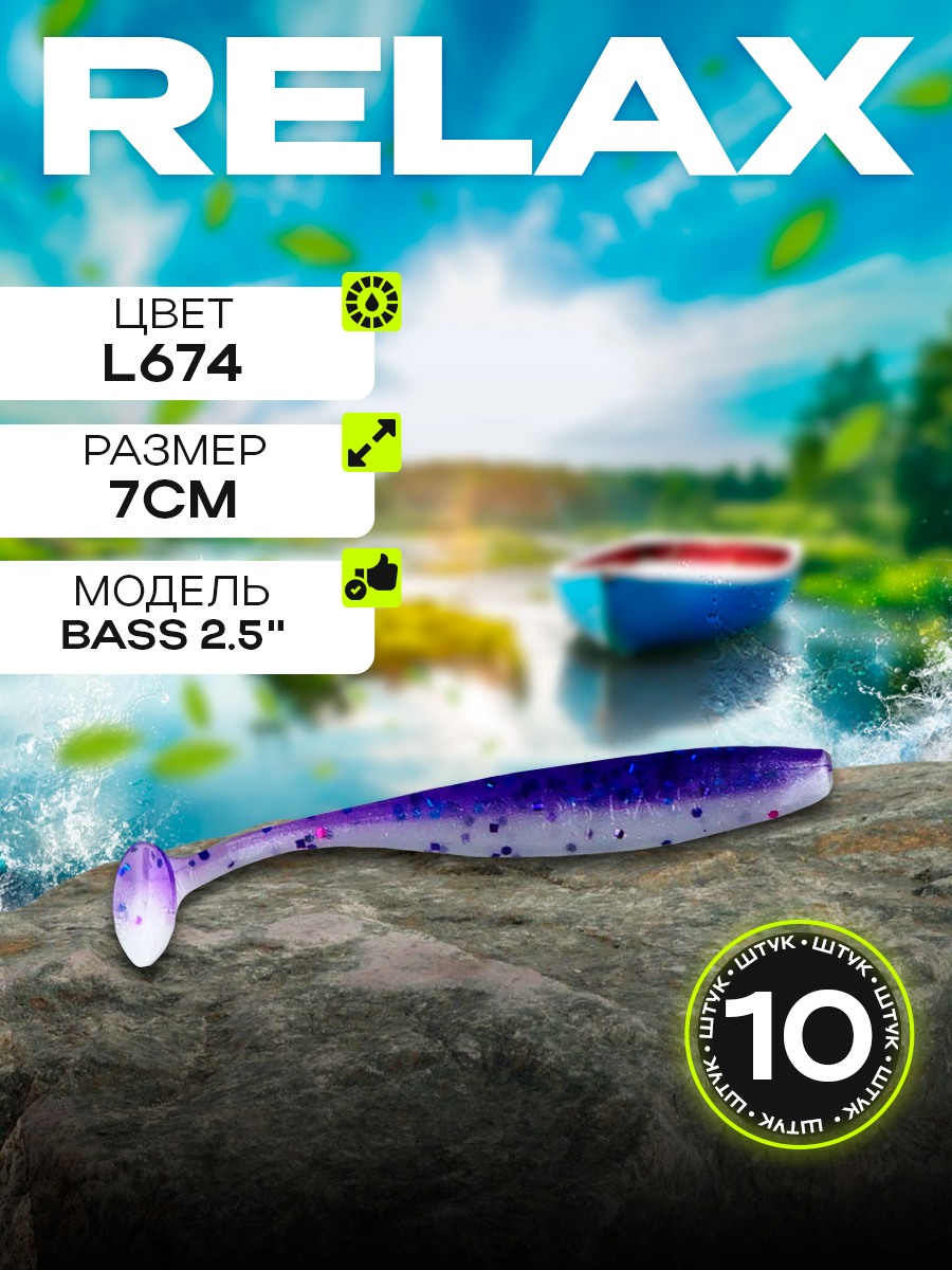 Виброхвосты Relax Bass 2.5" 7см цвет L674 (перламутровый, фиолетовый, синие блестки) (10шт) (BAS25)