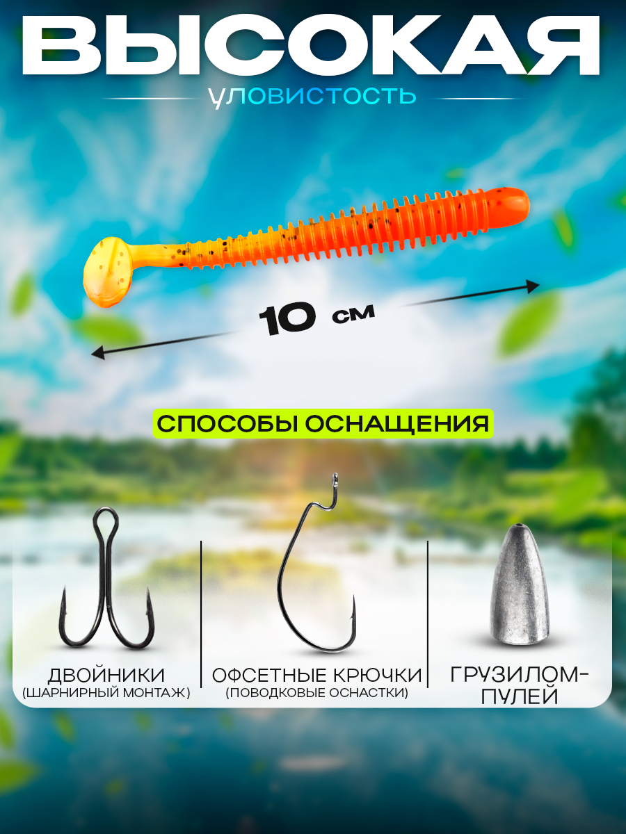 Виброхвосты Relax Texas 4" 10см цвет L069 (оранжевый, прозрачный, с блестками) (10шт) (TX4)
