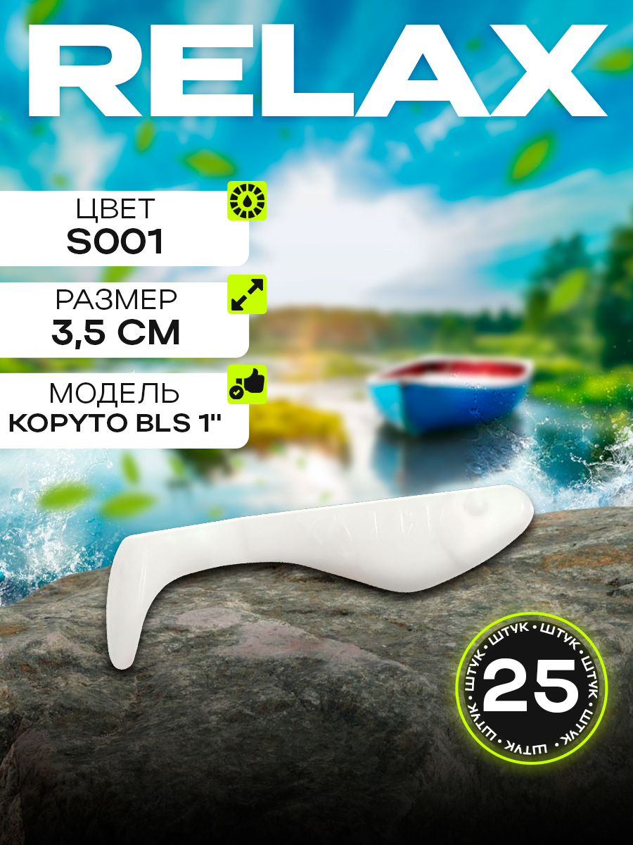 Виброхвосты Relax Kopyto BLS 1" 3,5см цвет S001 (белый) (25шт) (BLS1)