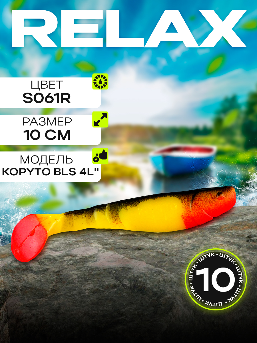 Виброхвосты Relax Kopyto BLS 4L" 10см цвет S061R (желтый, черный, красный) (10шт) (BLS4L)