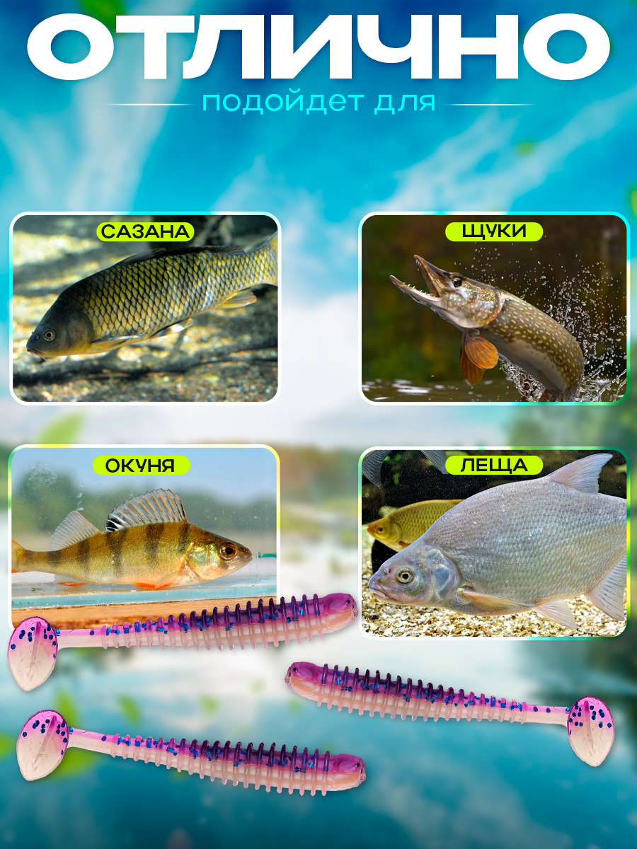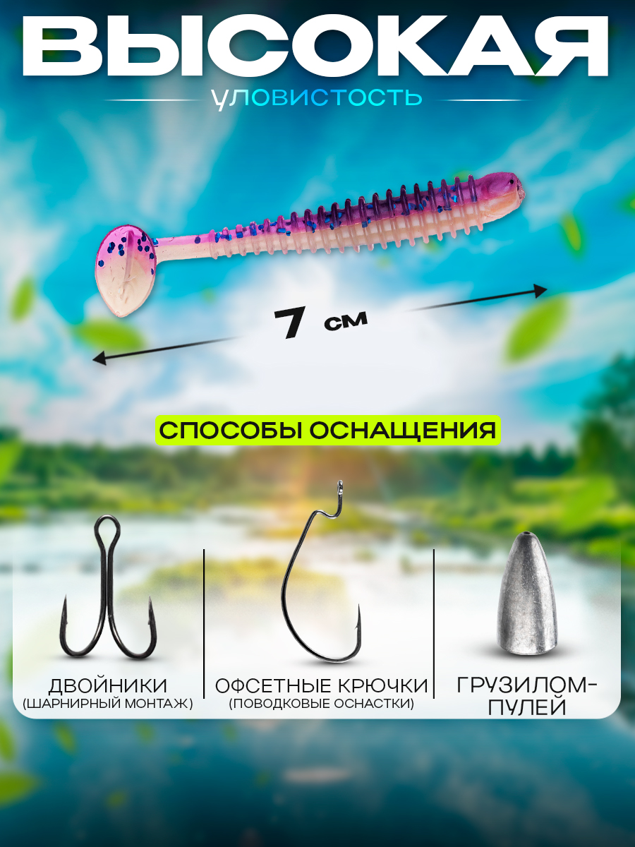 Виброхвосты Relax Texas 2.5" 7см цвет L319 (фиолетовый, прозрачный, синие блестки) (10шт) (TX25)