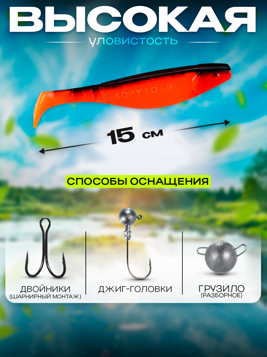 Виброхвосты Relax Kopyto BLS 6" 15см цвет S072 (красный, черный) (5шт) (BLS6)
