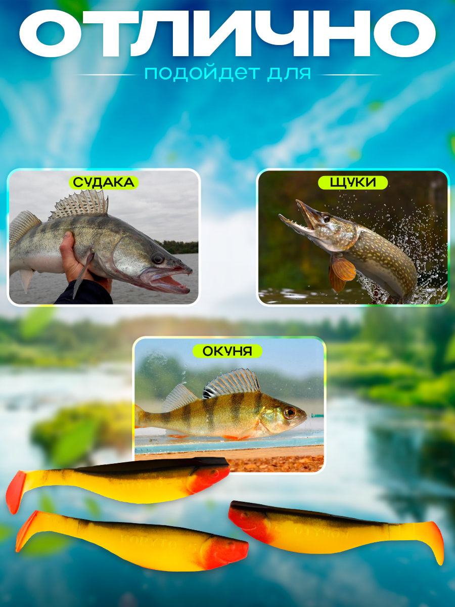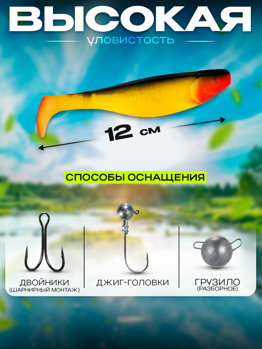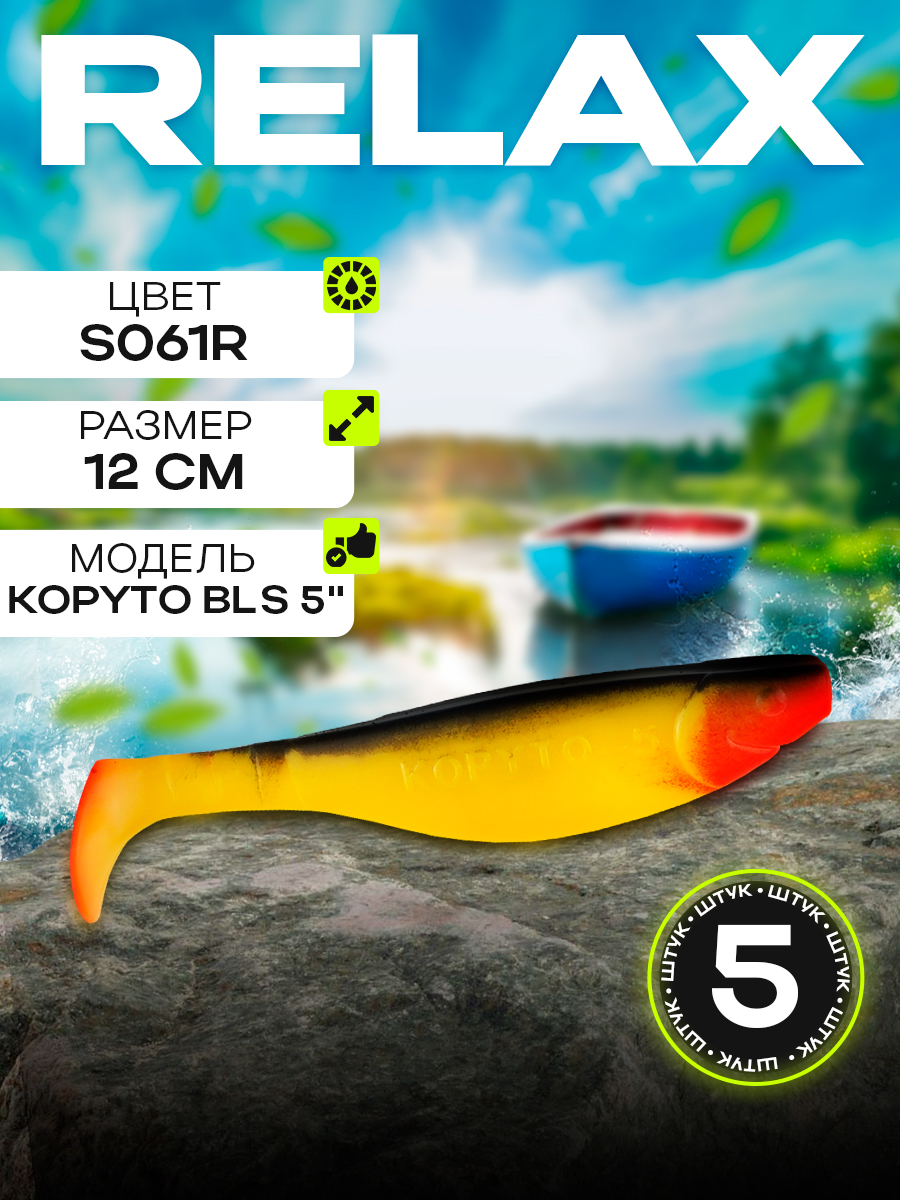 Виброхвосты Relax Kopyto BLS 5" 12см цвет S061R (желтый, черный, красный) (5шт) (BLS5)