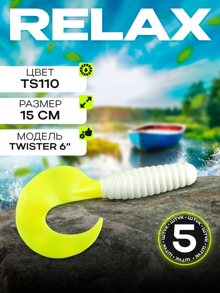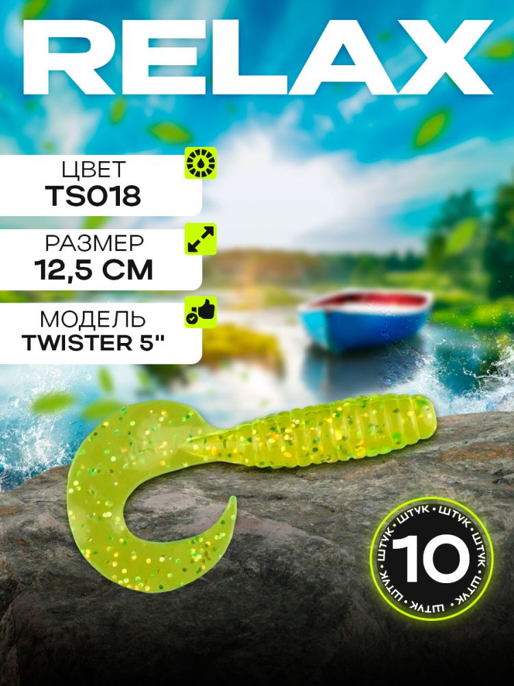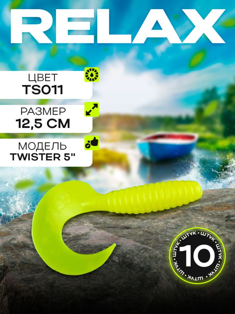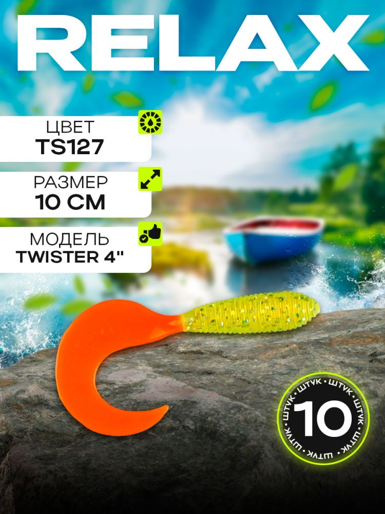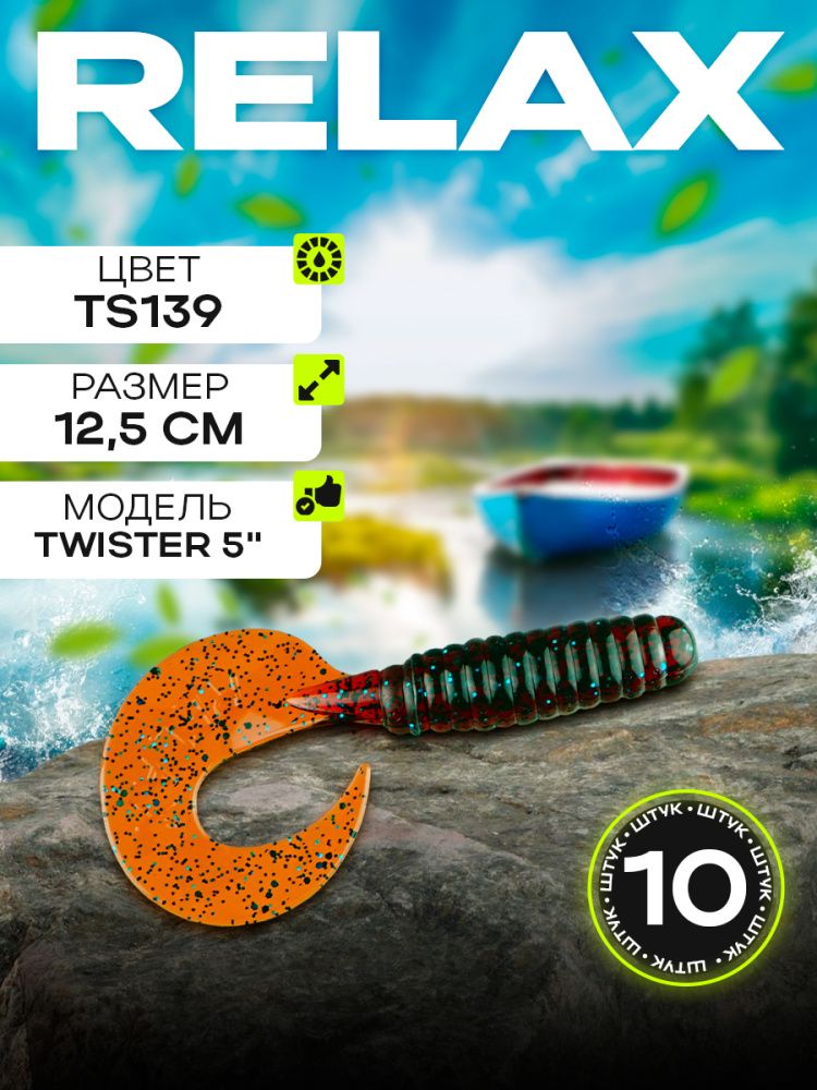 Твистеры Relax 5" 12,5см цвет TS066 (желтый, оранжевый) (10шт) (VR5)