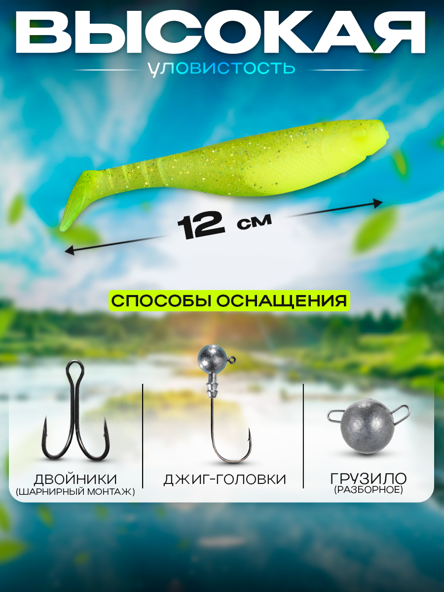 Виброхвосты Relax Kopyto BLS 5" 12см цвет L032 (желтый, с блестками) (5шт) (BLS5)