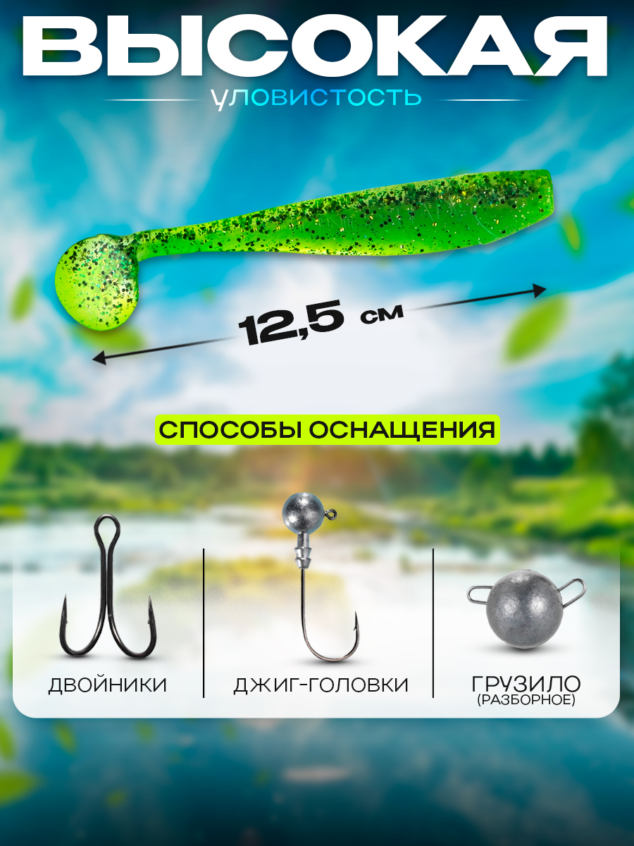 Виброхвосты Relax Kingshad 5" 12,5см цвет L635 (зеленый, с блестками) (5шт) (KS5)