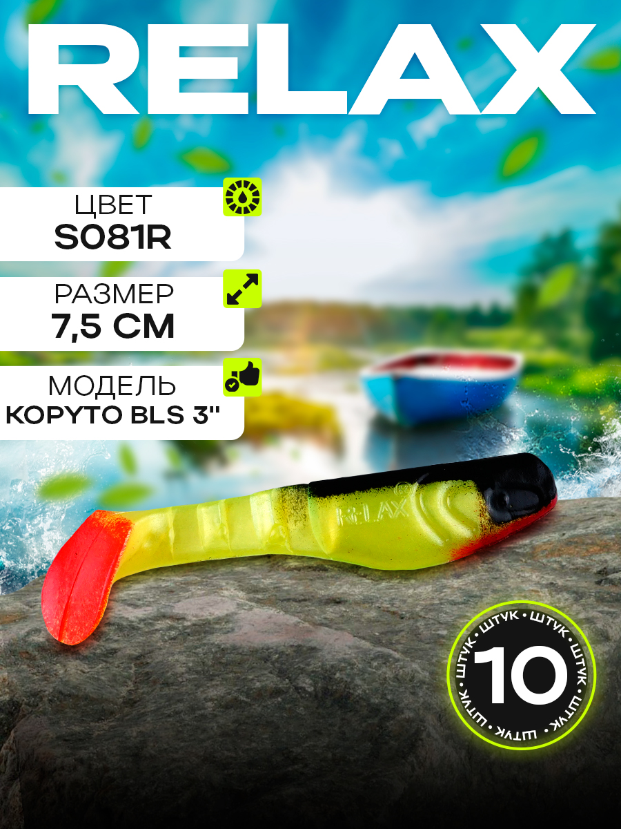 Виброхвосты Relax Kopyto BLS 3" 7,5см цвет S081R (желтый, черный, красный) (10шт) (BLS3)