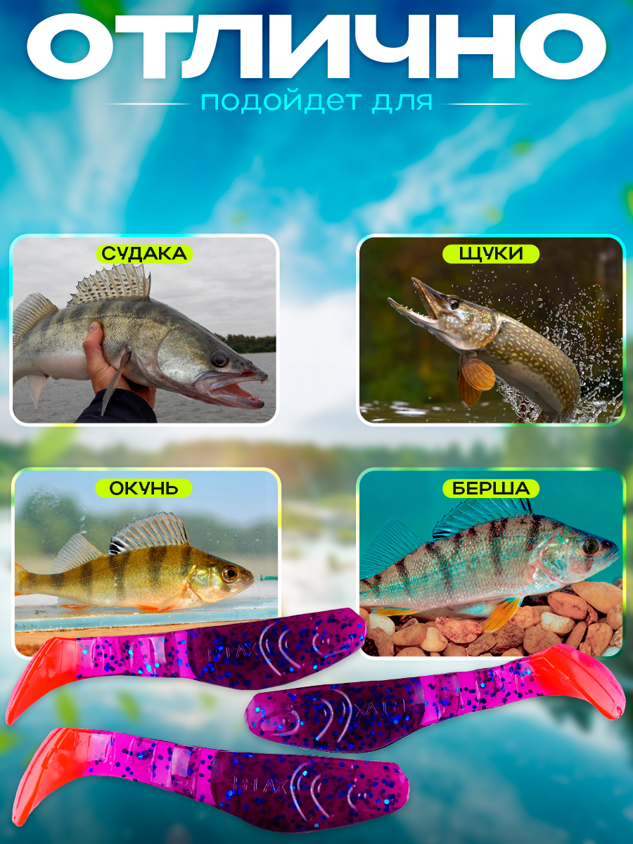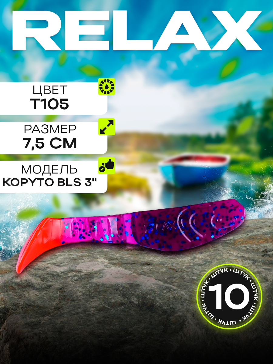 Виброхвосты Relax Kopyto BLS 3" 7,5см цвет T105 (фиолетовый, красный, синие блестки) (10шт) (BLS3)