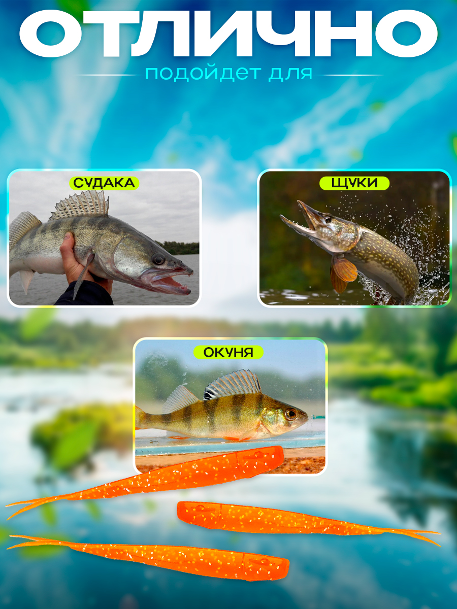 Слаги Relax Oklahoma 2.75" 6,8см цвет S073 (оранжевый, с блестками) (10шт) (OKL275)