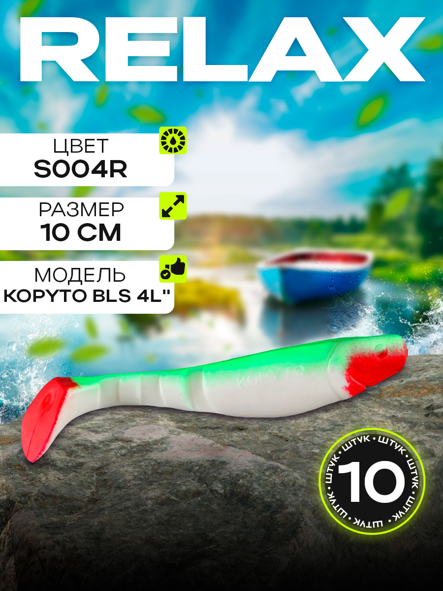 Виброхвосты Relax Kopyto BLS 4L" 10см цвет S004R (белый, зеленый, красный) (10шт) (BLS4L)