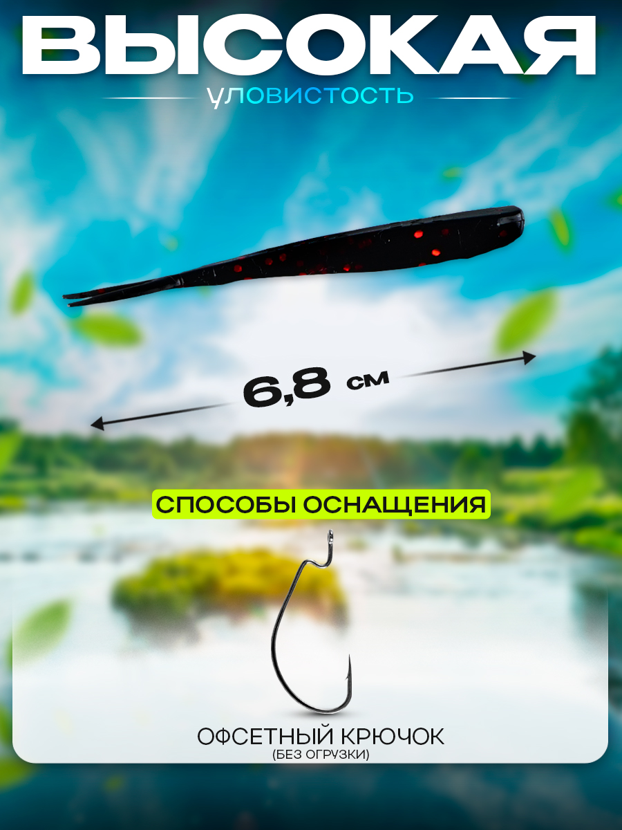 Слаги Relax Oklahoma 2.75" 6,8см цвет S341 (черный, красные блестки) (10шт) (OKL275)