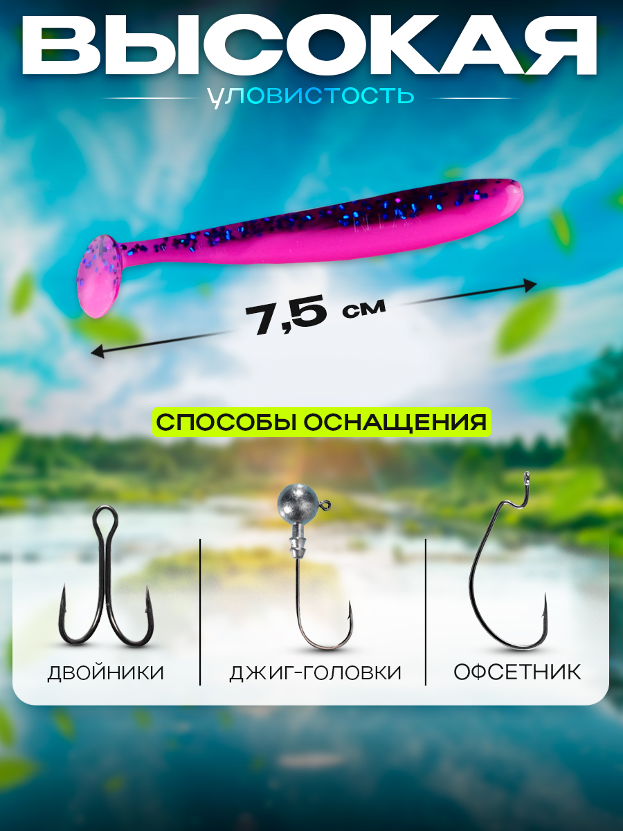 Виброхвосты Relax Bass 3" 7,5см цвет L683 (лиловый, синие блестки) (10шт) (BAS3)