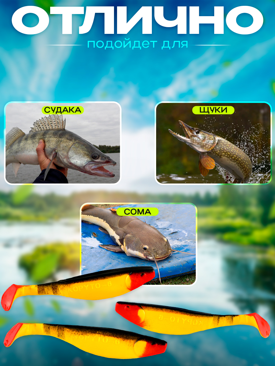 Виброхвосты Relax Kopyto BLS 6" 15см цвет S061R (желтый, черный, красный) (5шт) (BLS6)
