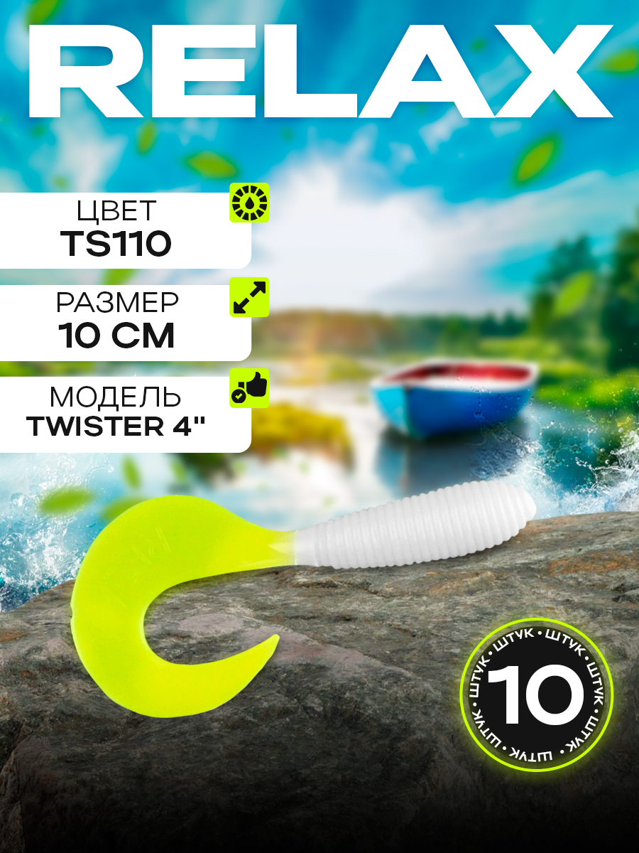 Твистеры Relax 4" 10см цвет TS110 (белый, желтый) (10шт) (VR4)