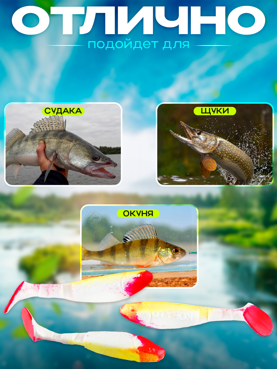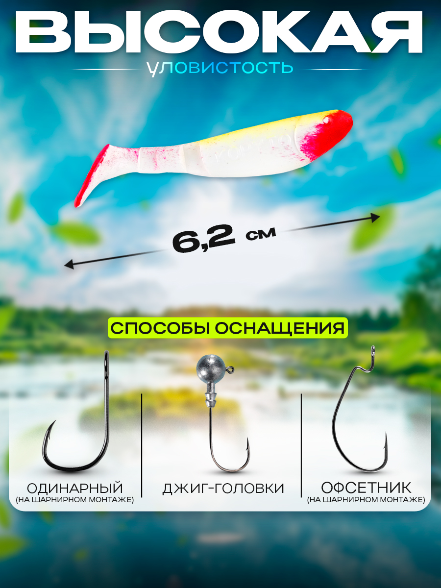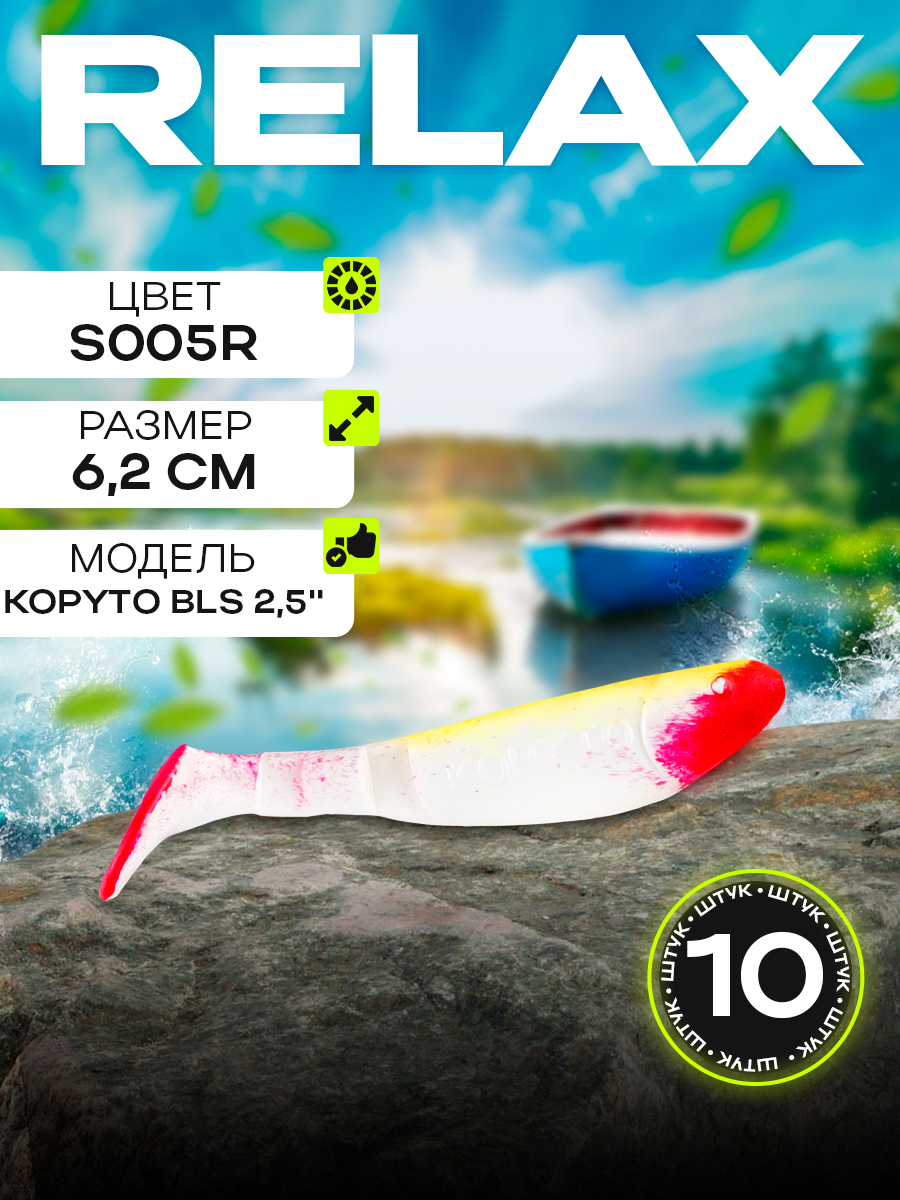 Виброхвосты Relax Kopyto BLS 2.5" 6,2см цвет S005R (белый, желтый, красный) (10шт) (BLS25)
