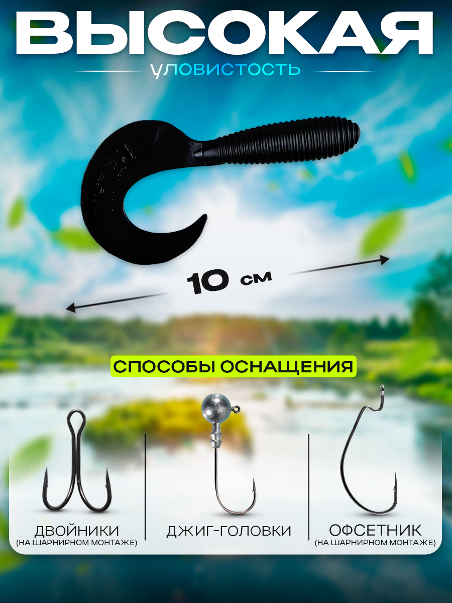 Твистеры Relax 4" 10см цвет TS029 (черный) (10шт) (VR4)