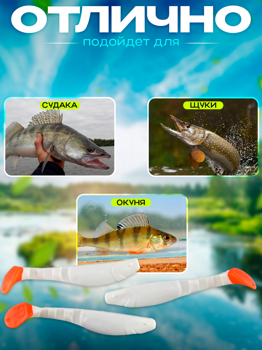 Виброхвосты Relax Kopyto BLS 4L" 10см цвет T005 (белый, оранжевый) (10шт) (BLS4L)