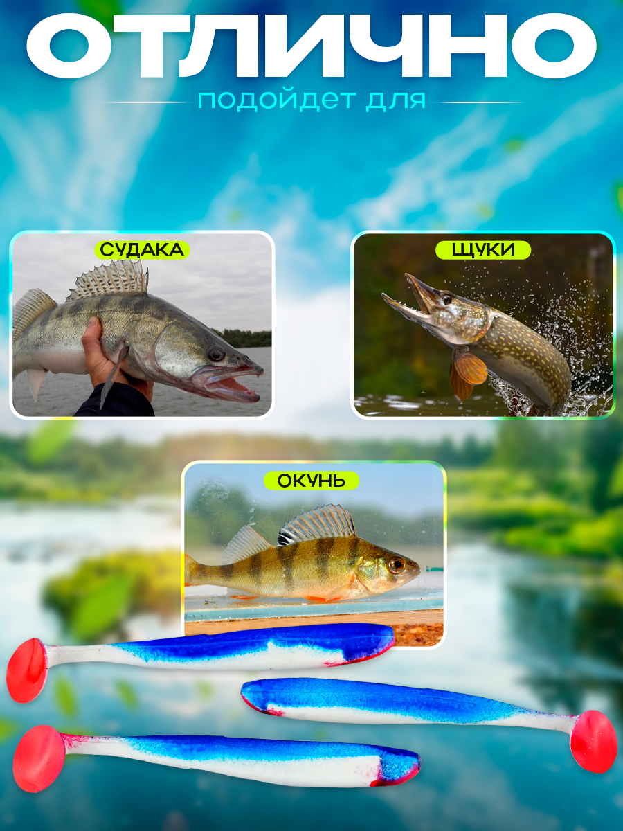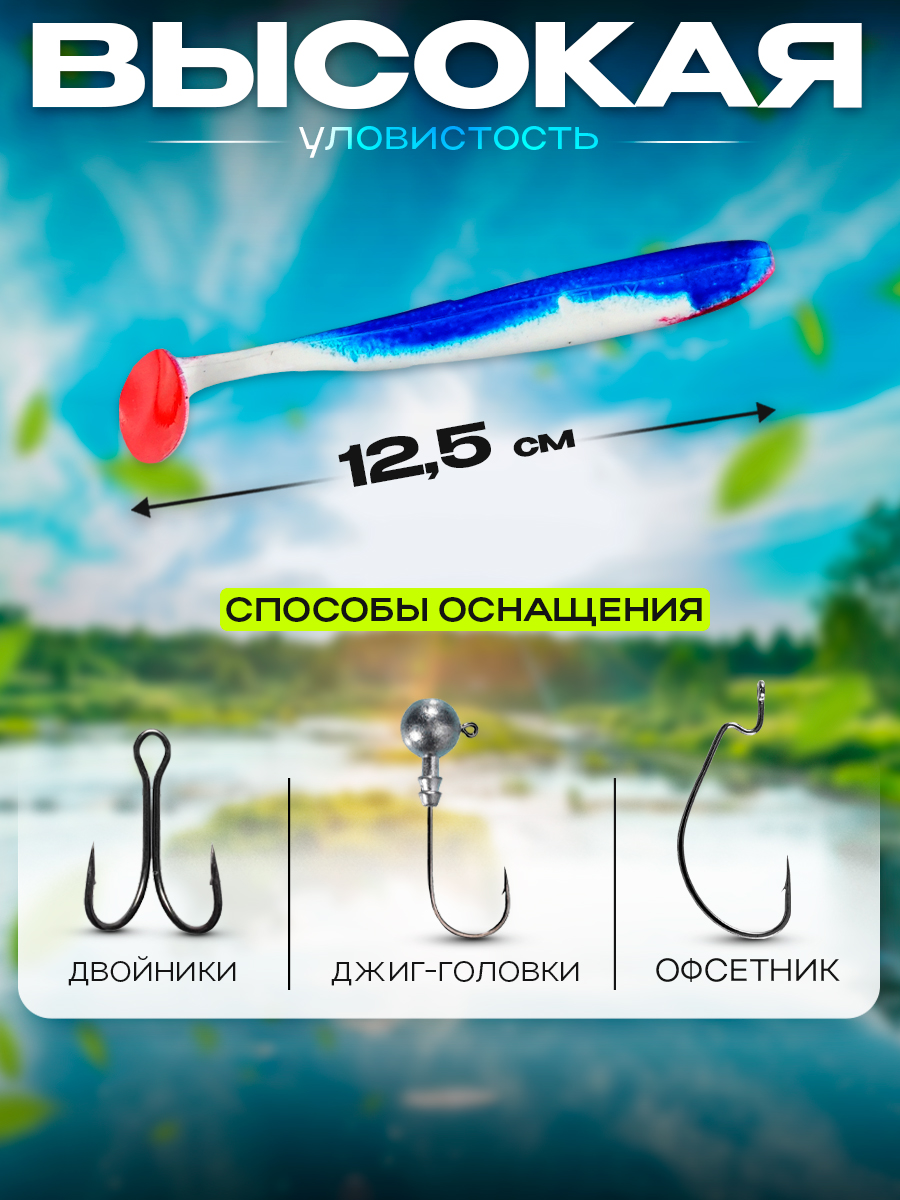 Виброхвосты Relax Bass 5" 12,5см цвет S006R (белый, синий, красный) (5шт) (BAS5)