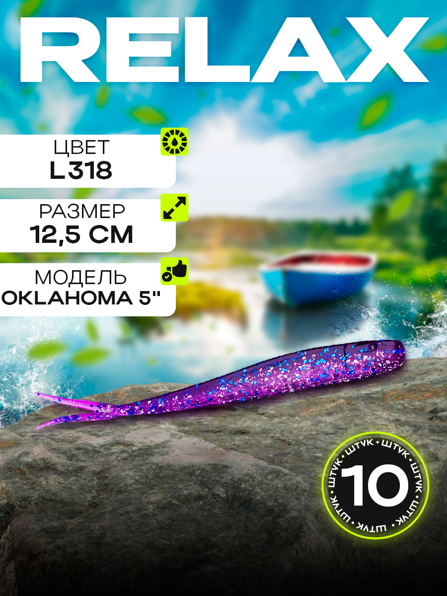 Слаги Relax Oklahoma 5" 12,5см цвет L318 (фиолетовый, синие блестки) (10шт) (OKL5)