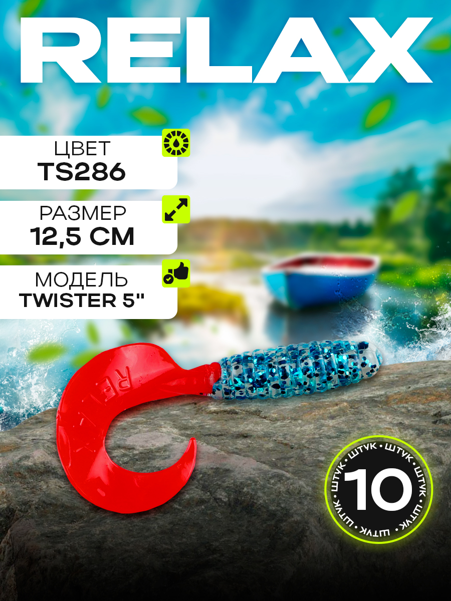 Твистеры Relax 5" 12,5см цвет TS286 (прозрачный, красный, синие блестки) (10шт) (VR5)