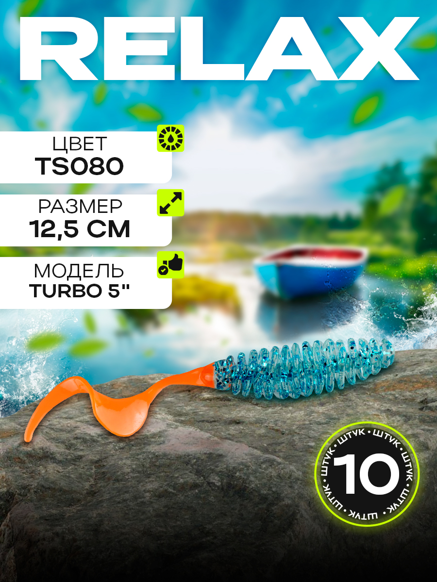 Твистеры Relax Turbo 5" 12см цвет TS080 (перламутровый, красный, синие блестки) (10шт) (TRT5)