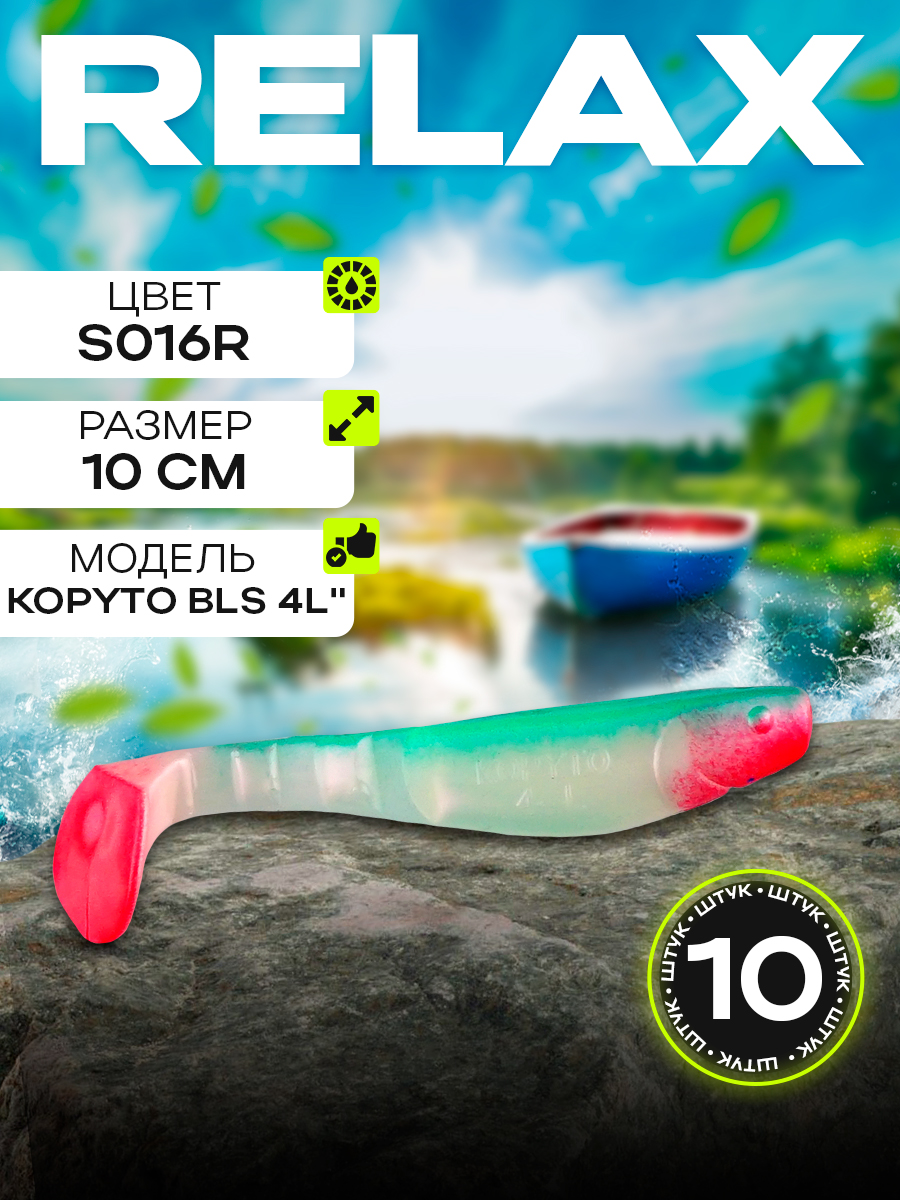 Виброхвосты Relax Kopyto BLS 4L" 10см цвет S016R (перламутровый, зеленый, красный) (10шт) (BLS4L)
