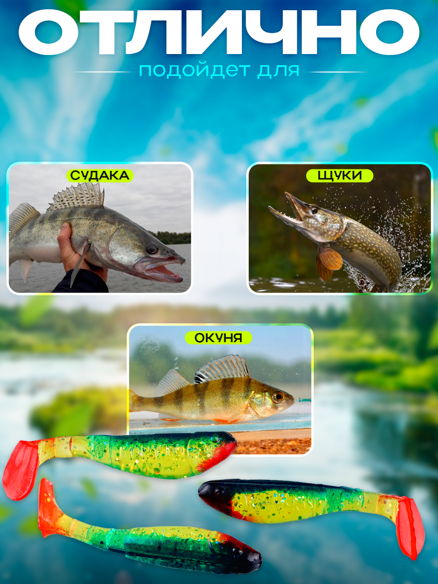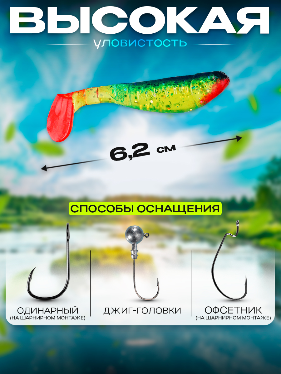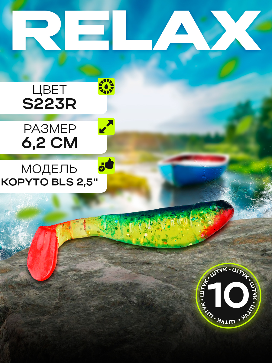 Виброхвосты Relax Kopyto BLS 2.5" 6,2см цвет S223R (желтый, зеленый, ченый, красный, с блестками) (1