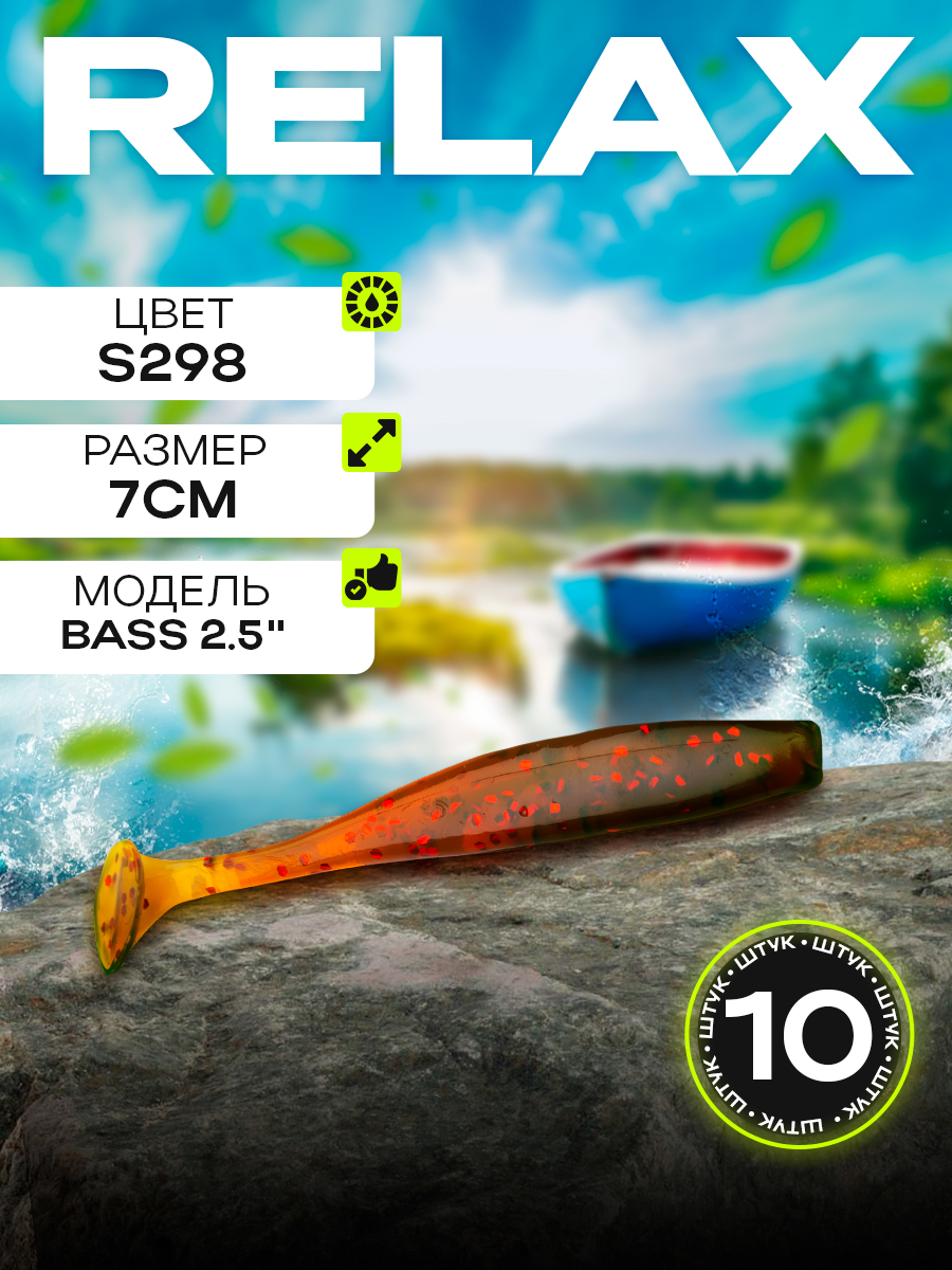 Виброхвосты Relax Bass 2.5" 7см цвет S298 (машинное масло, красные блестки) (10шт) (BAS25)