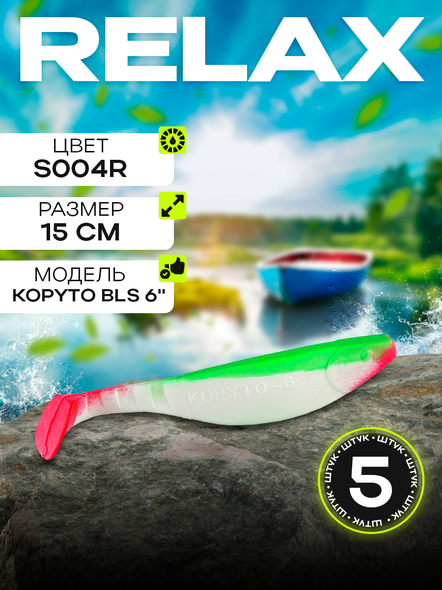 Виброхвосты Relax Kopyto BLS 6" 15см цвет S004R (белый, зеленый, красный) (5шт) (BLS6)