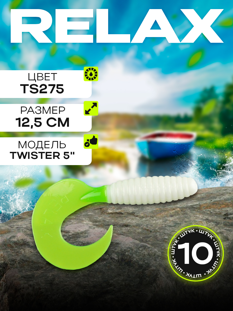Твистеры Relax 5" 12,5см цвет TS275 (белый, зеленый) (10шт) (VR5)