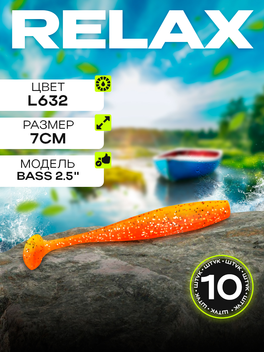 Виброхвосты Relax Bass 2.5" 7см цвет L632 (оранжевый, с блестками) (10шт) (BAS25)