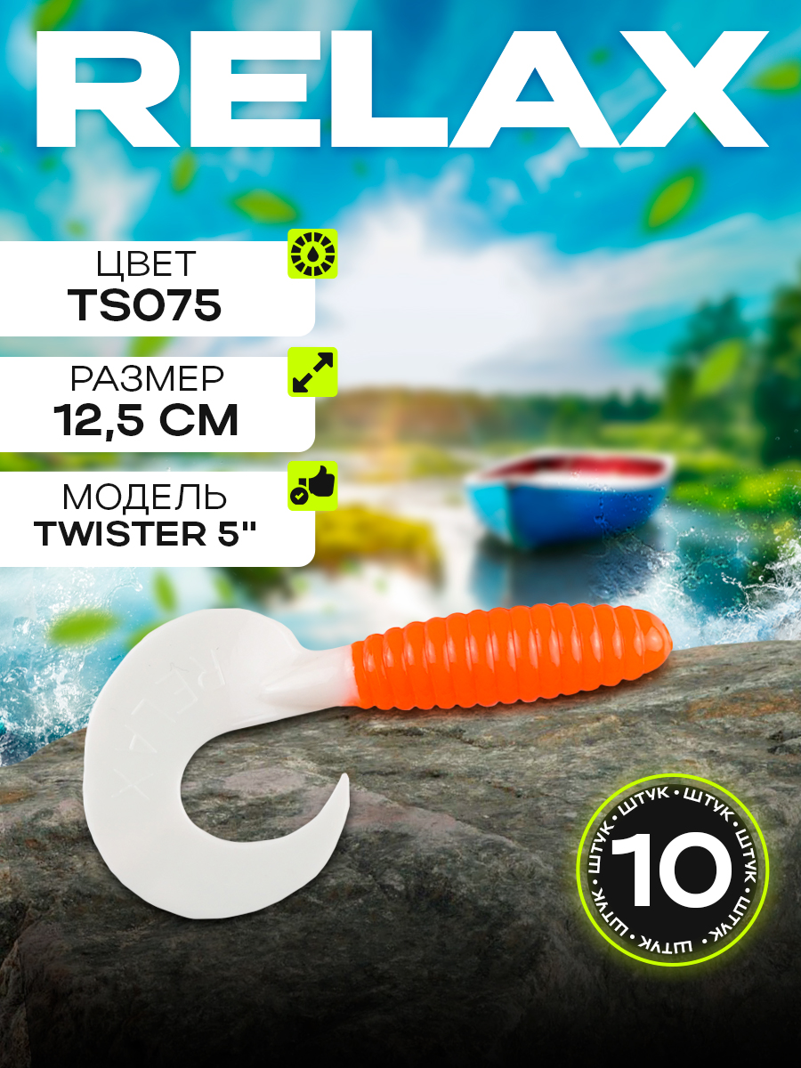Твистеры Relax 5" 12,5см цвет TS075 (оранжевый, белый) (10шт) (VR5)