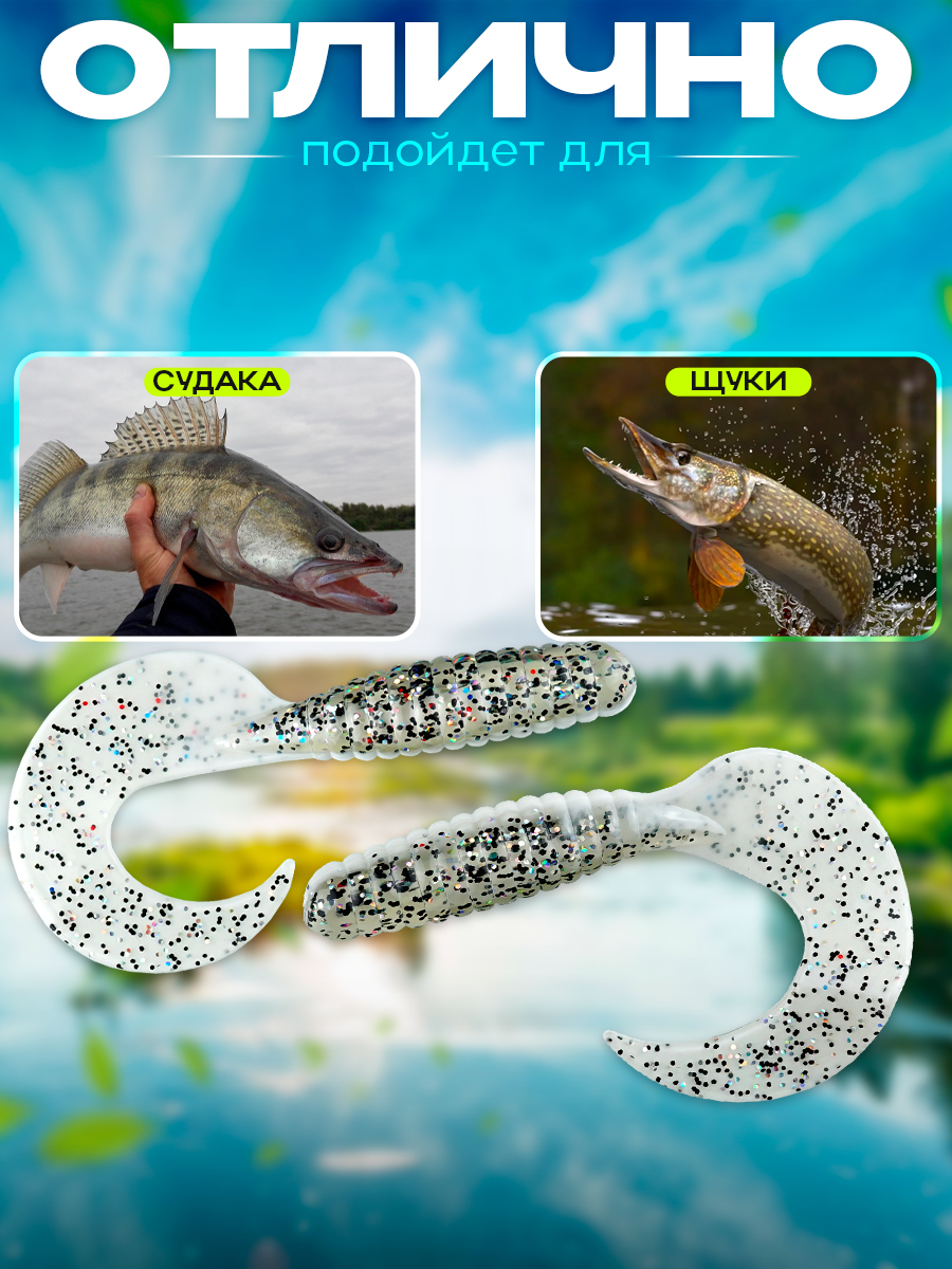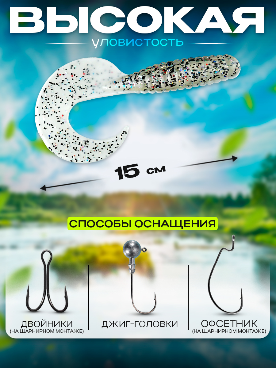 Твистеры Relax 6" 15см цвет TL059 (прозрачный, с блестками) (5шт) (VR6)