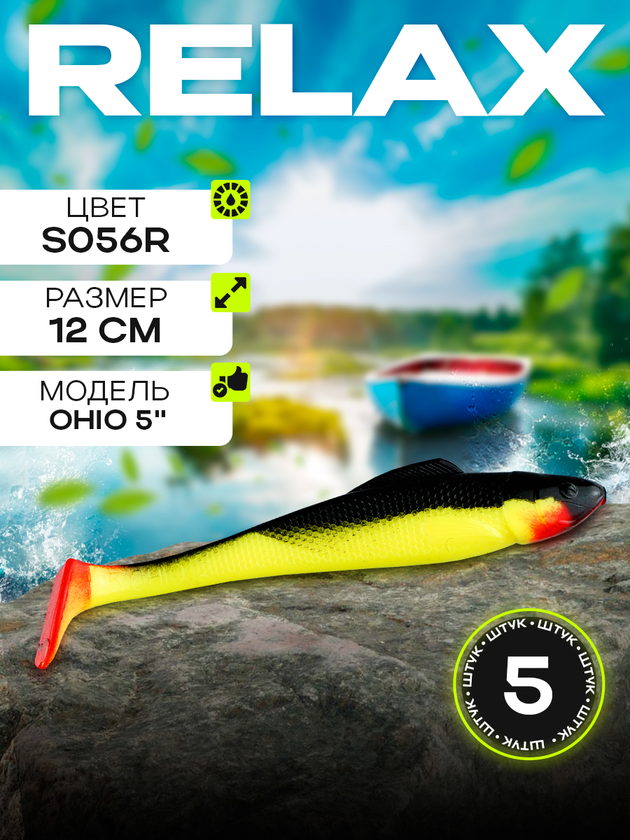 Виброхвосты Relax Ohio 5" 12см цвет S056R (желтый, черный, красный) (5шт) (OH5)
