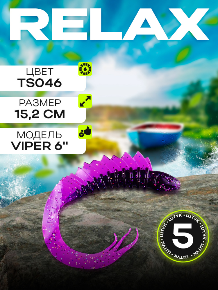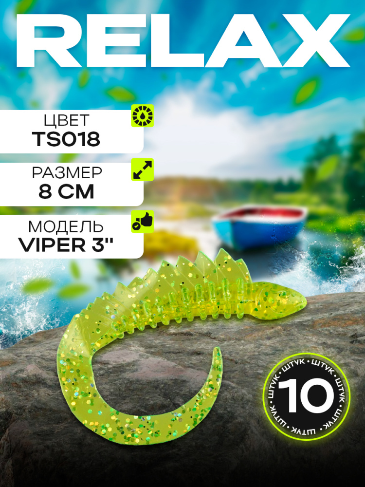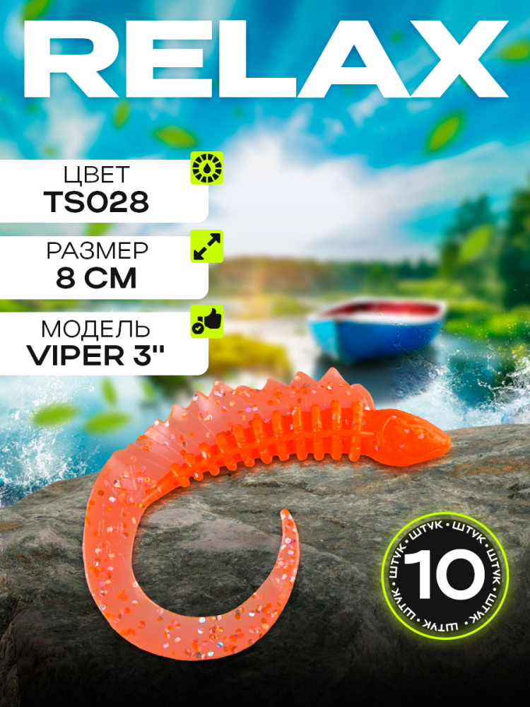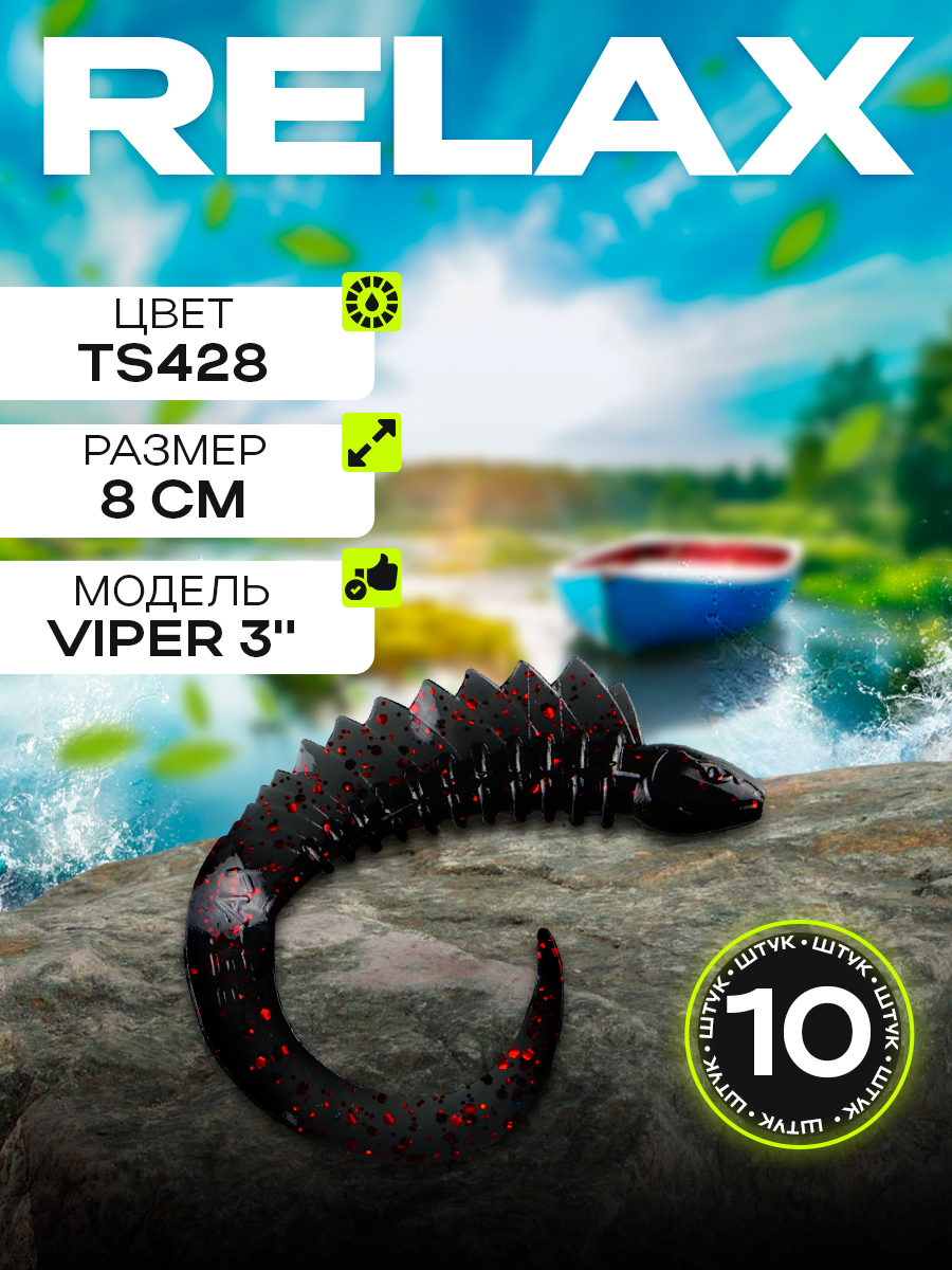 Твистеры Relax VIper 3" 8см цвет TS428 (черный, красные блестки) (10шт) (VPR3)