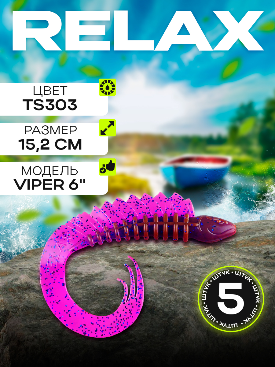 Твистеры Relax VIper 6" 15,2см цвет TS303 (фиолетовый, синие блестки) (5шт) (VPR6)
