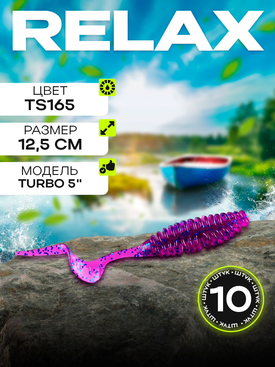 Твистеры Relax Turbo 5" 12см цвет TS165 (фиолетовый, синие блески) (10шт) (TRT5)