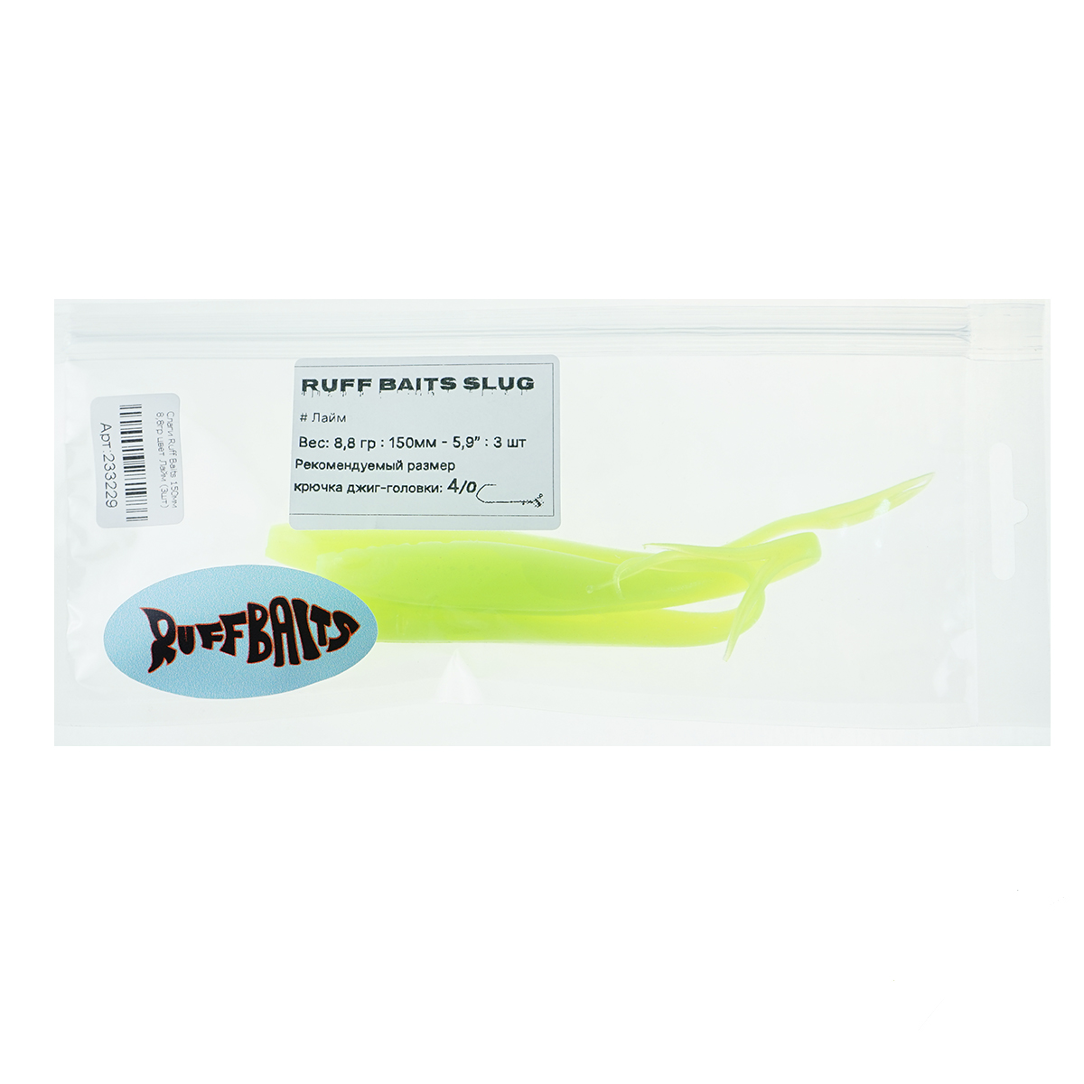 Слаги Ruff Baits 15см 8,8гр цвет Лайм (3шт)