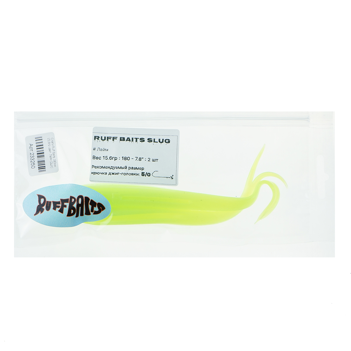 Слаги Ruff Baits 18см 15,6гр цвет Лайм (2шт)