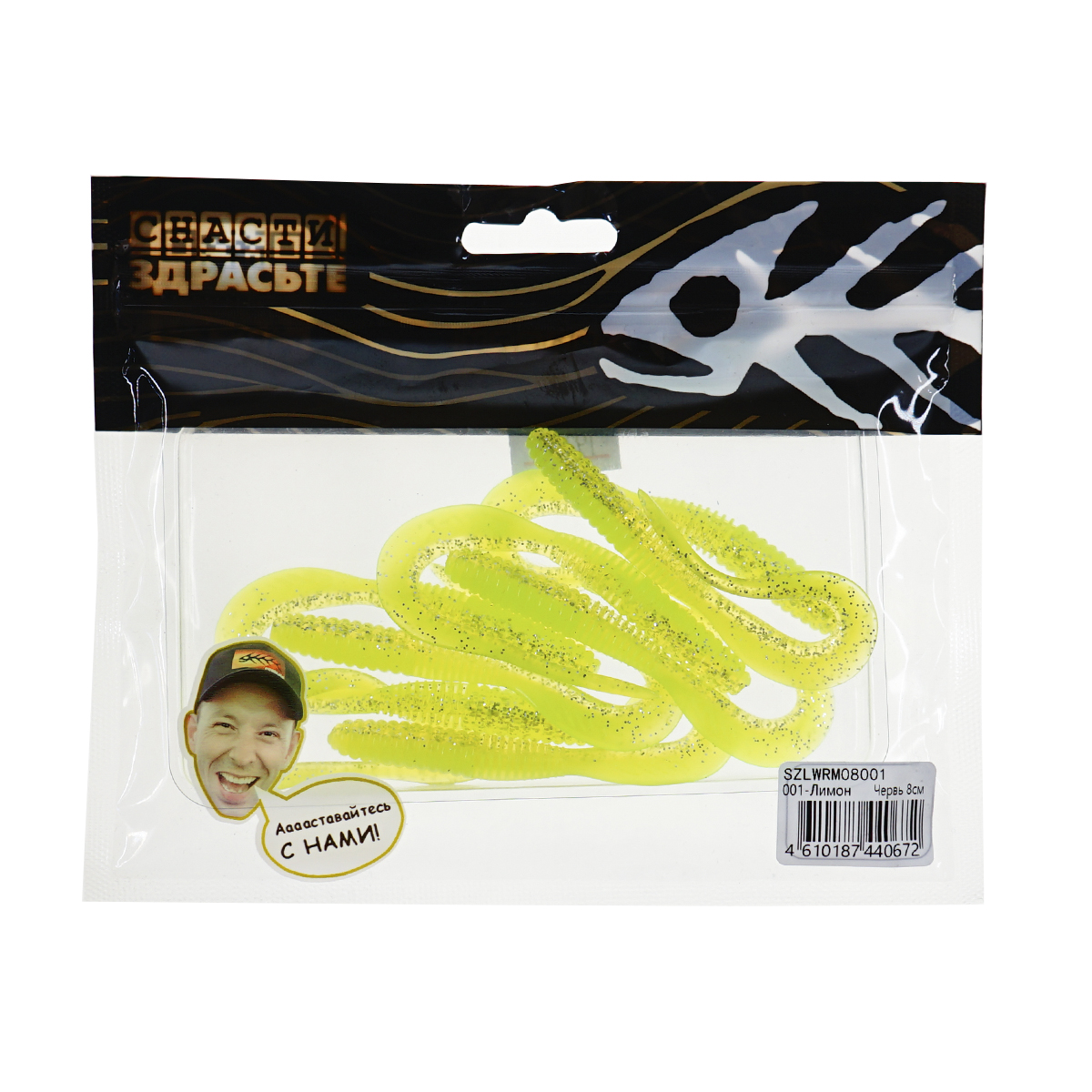Твистеры Снасти Здрасьте Червь 8см цвет 001 (Лимон) (8шт)