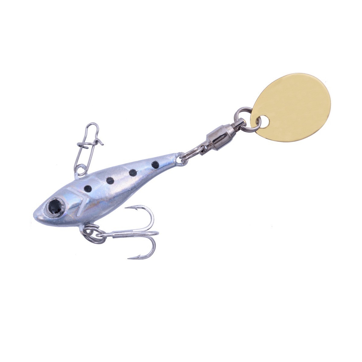 Крупный, почти круглый лепесток при вращении создает шум и оставляет за собой гидродинамическую струю, волны от которой передаются на боковую линию хищника. Рыба, охотящаяся на удалении, не может оставить без внимания перемещение потенциальной добычи, поэтому подходит ближе и атакует. Корпус приманки имитирует довольно упитанную рыбку. Выразительные глаза служат точкой атаки, за счет чего промахи случаются редко.